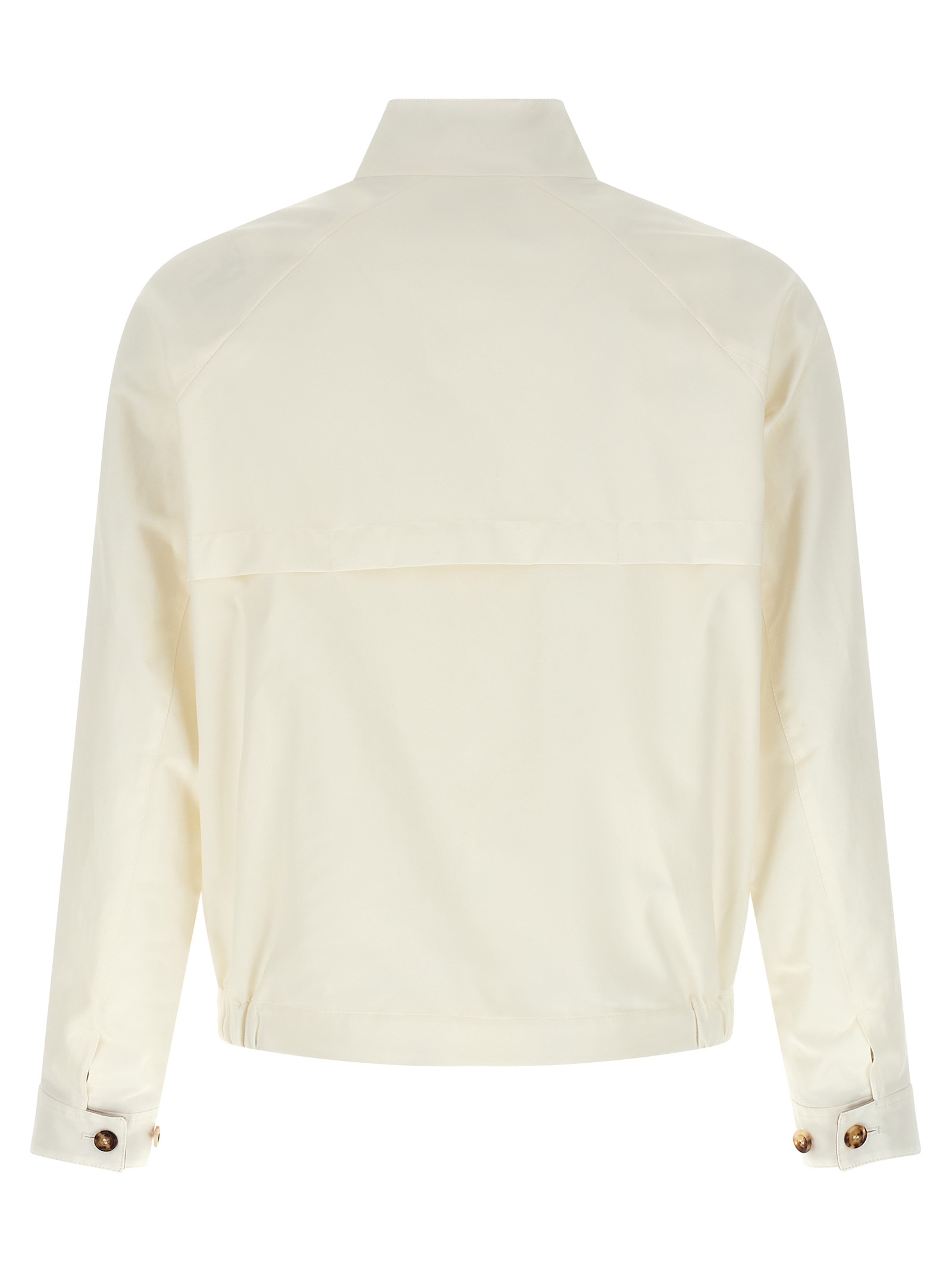 Water-repellent and anti-wrinkle techno gabardine cotton jacket, water-repellent nylon lining, standing collar with ribbed velvet lining, front zip closure, pockets, long cuffed sleeves, side elastic on the hem.