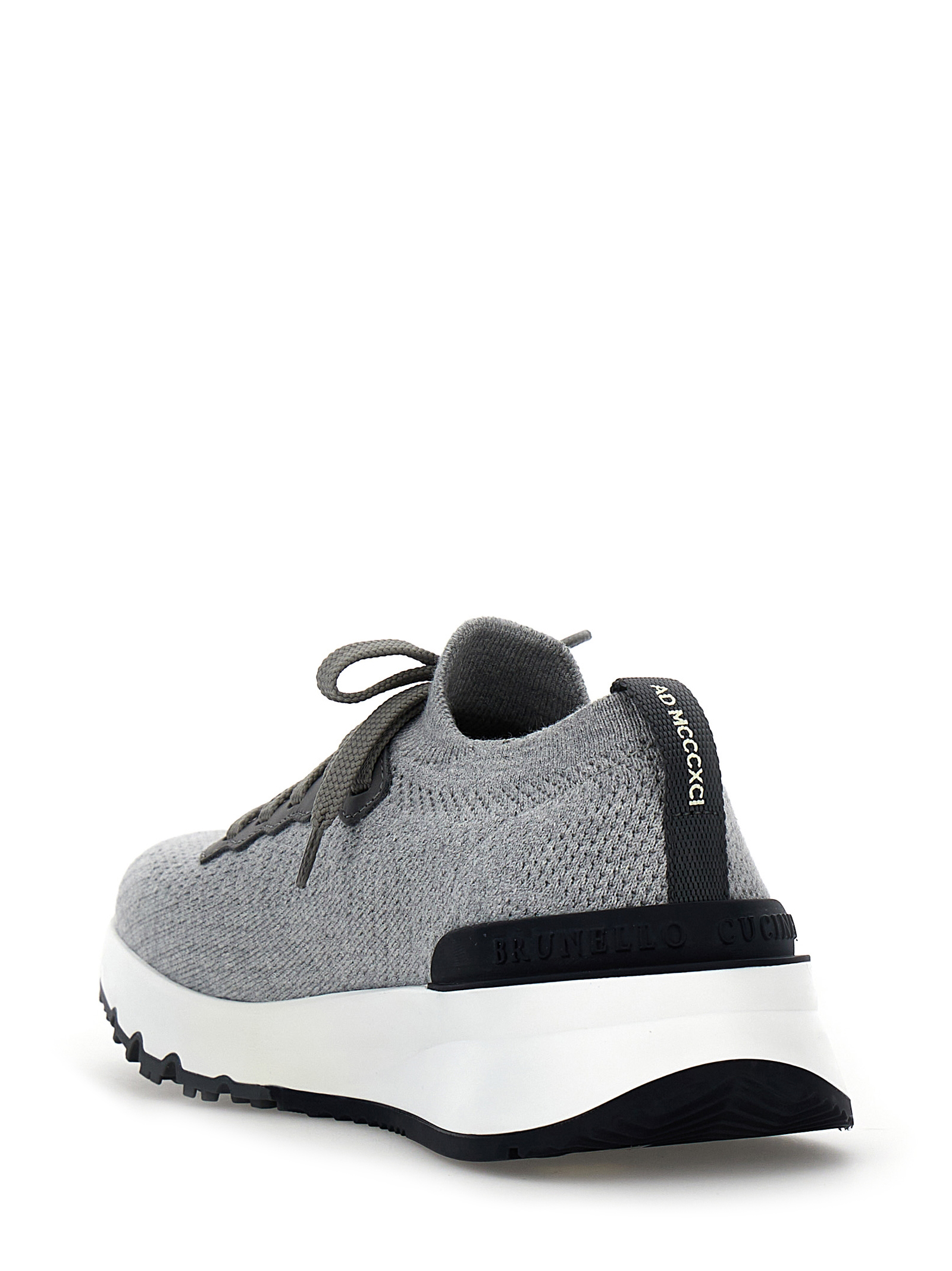 ‘Runners’ sneakers in cotton knit with tone-on-tone semi-gloss calfskin details, slip-on style, laces, removable insole, micro-lightweight sole.