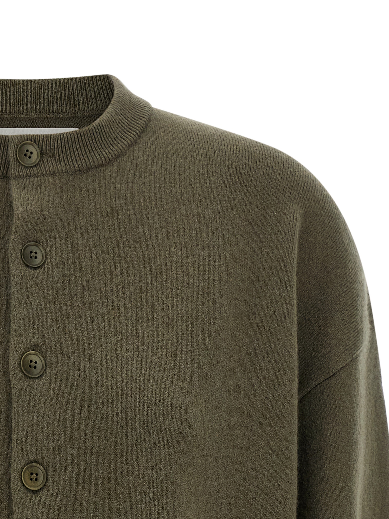 'n°170 chou' wool cardigan with crew neck, front button closure, long cuffed sleeves.