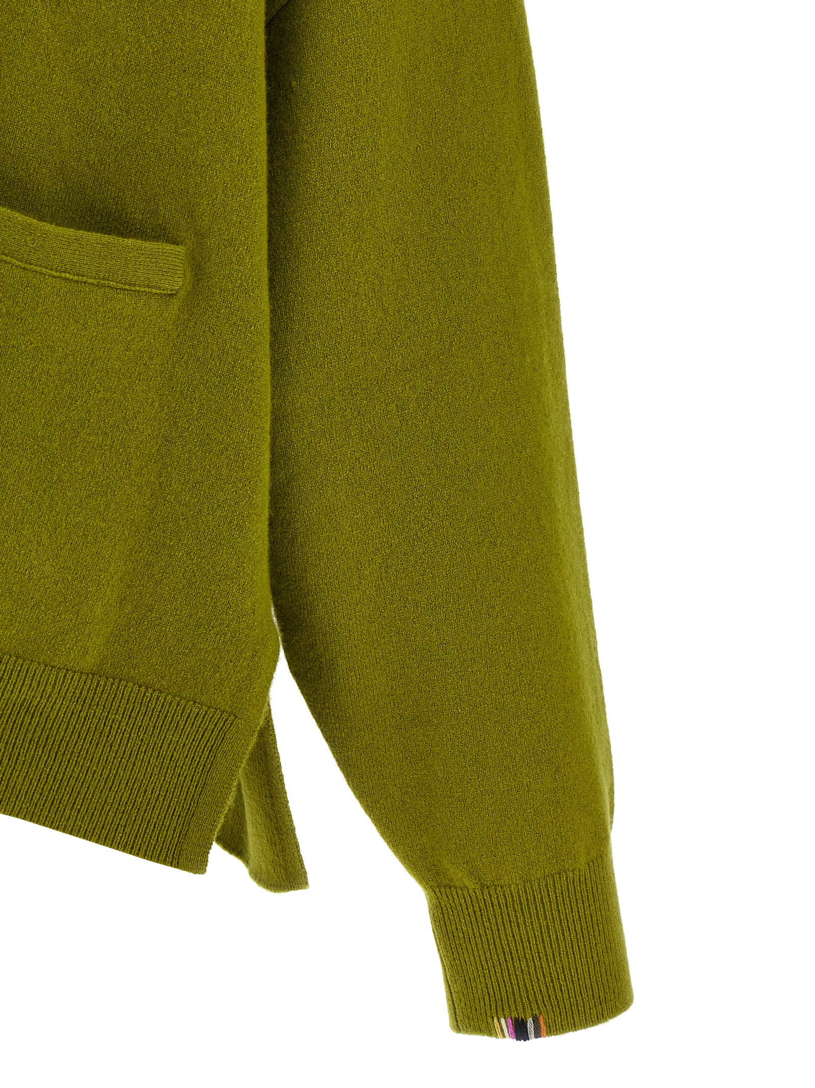 'N°24 Tokio' cashmere blend cardigan, V-neck, front corozo button closure plus a side one that can change the fit, side slits, pockets, long sleeves with cuffs and dropped shoulder.