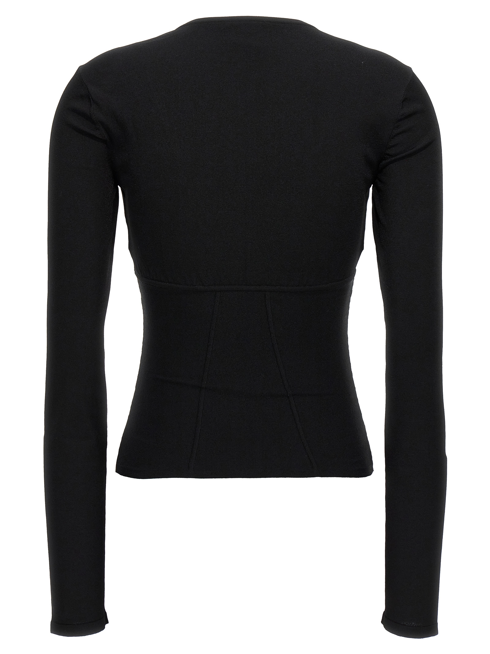 'Bustier' stretch knit top, padded cups, wide neckline, long sleeves.