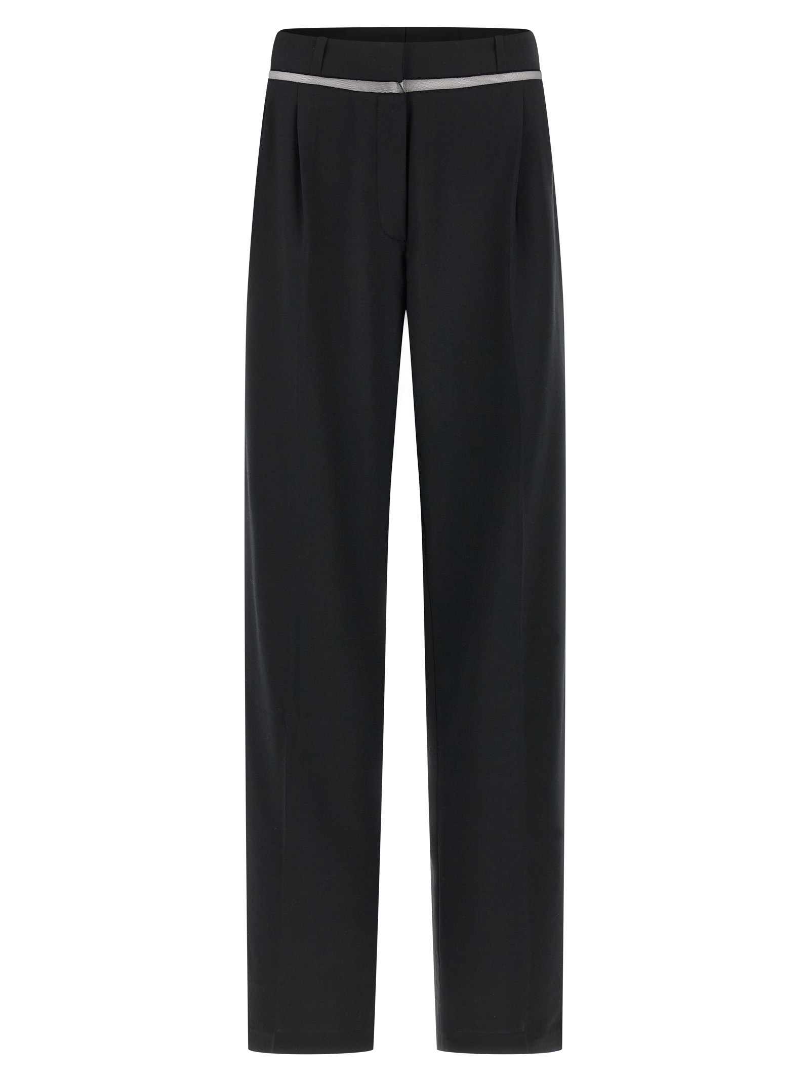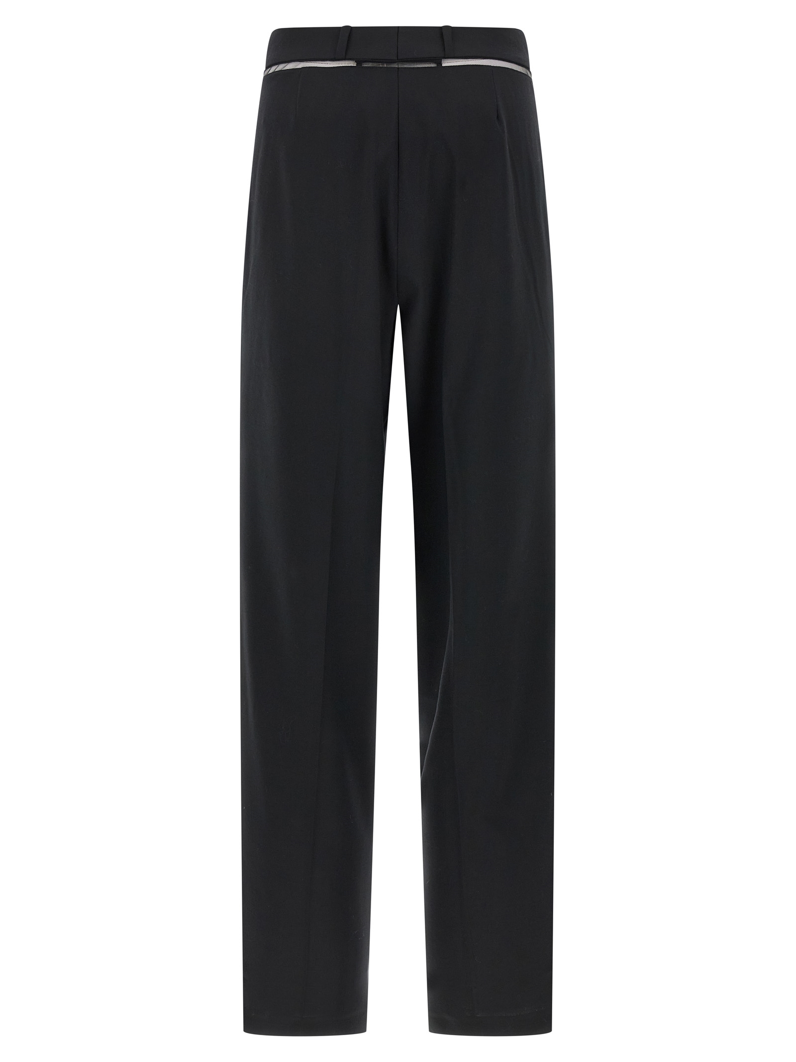 Anouk' virgin wool blend pants with semi-transparent tulle inserts, pince, stretched pleat, straight leg, zip, hook and front button closure, pockets.