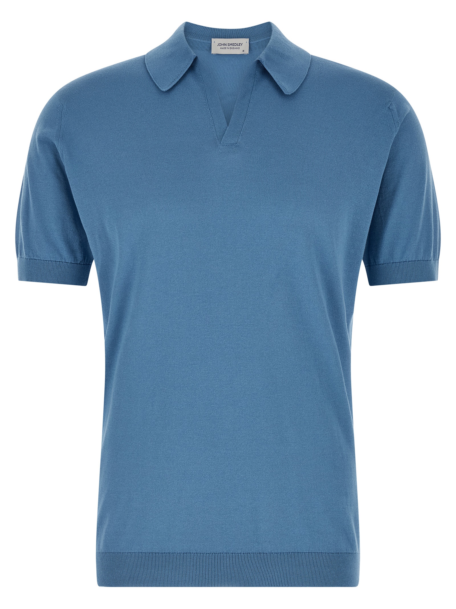 Поло-рубашка Noah из тонкого хлопка Sea Island плотностью 30 нитей, от John Smedley, с открытым воротником, короткими рукавами с манжетами и повязкой на голову.