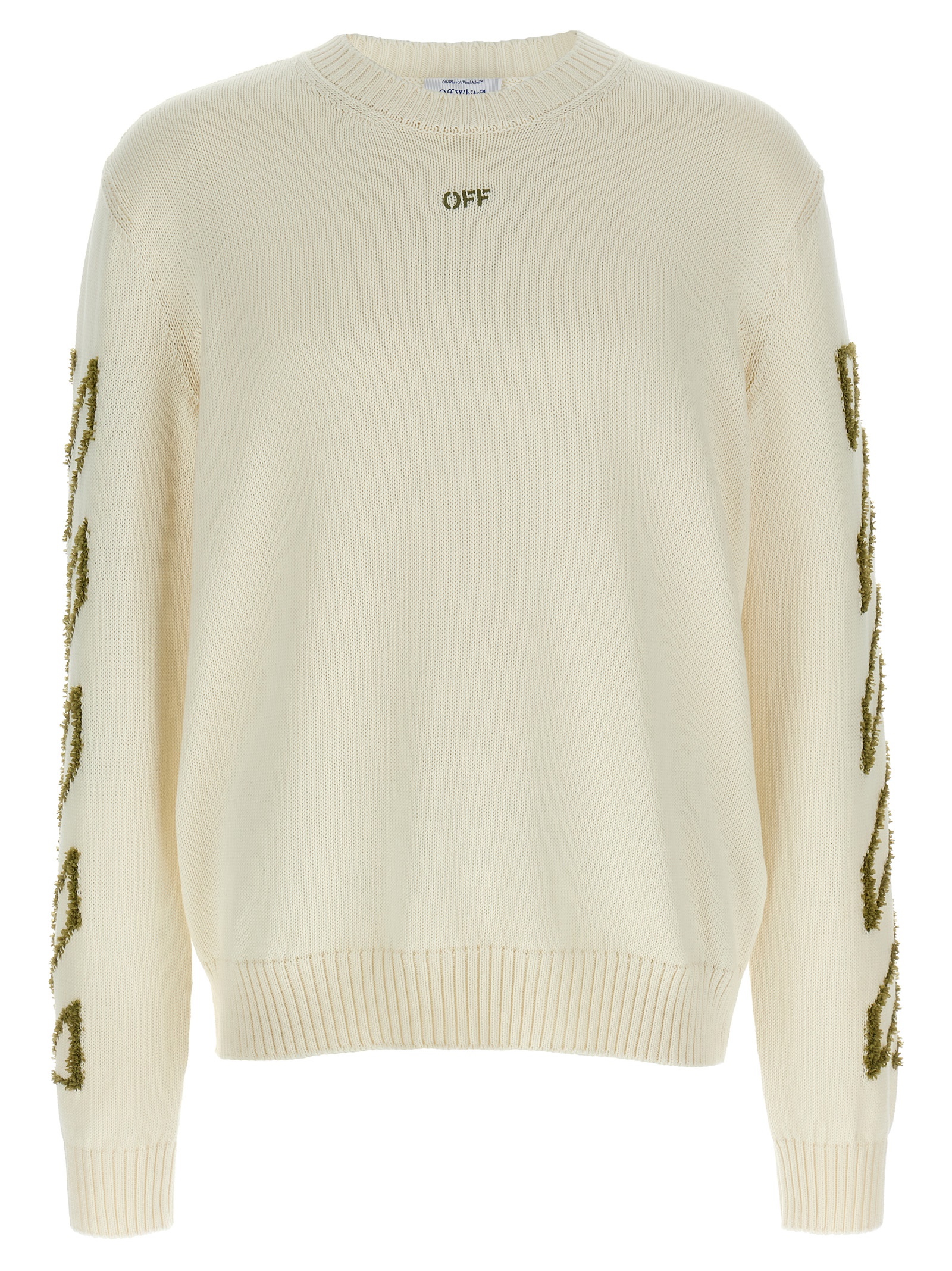 Knitted cotton sweater with 3D 'Diag Outline' inlays, front logo embroidery, crew neck, long cuffed sleeves and dropped shoulders.