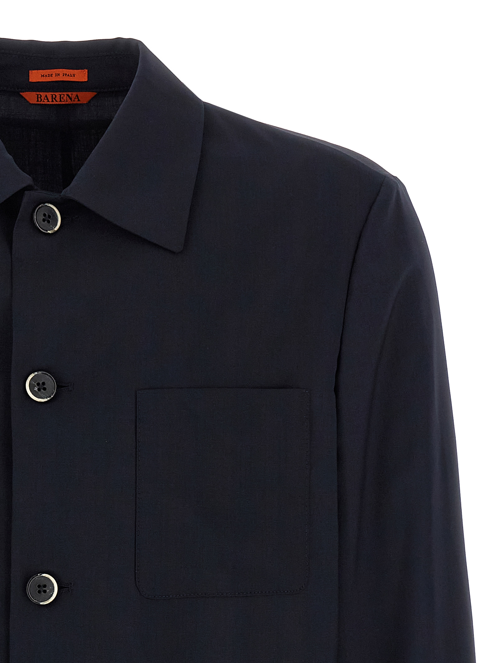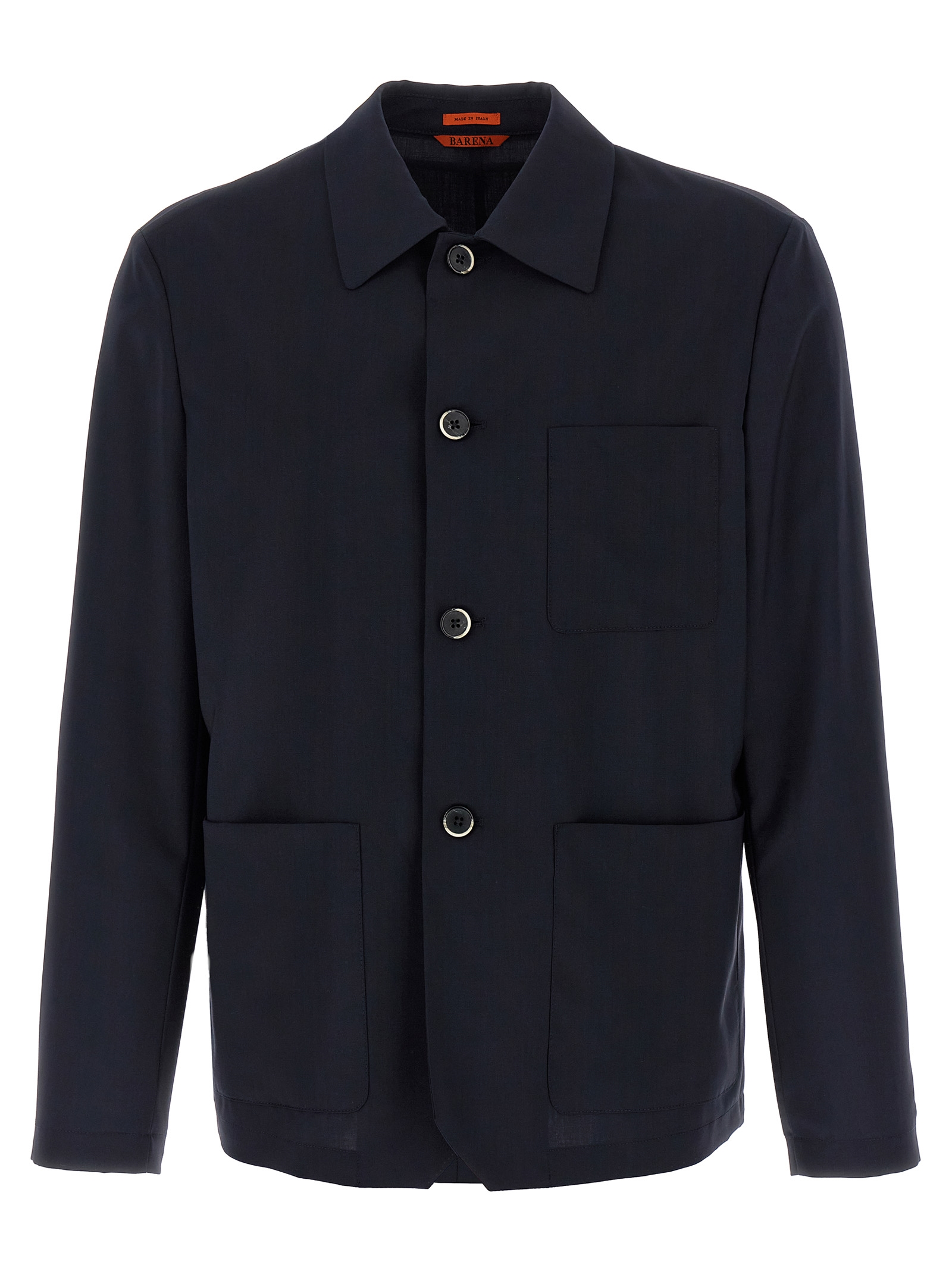 'Visal' tropical wool overshirt with front button closure, pockets, long cuffed sleeves.