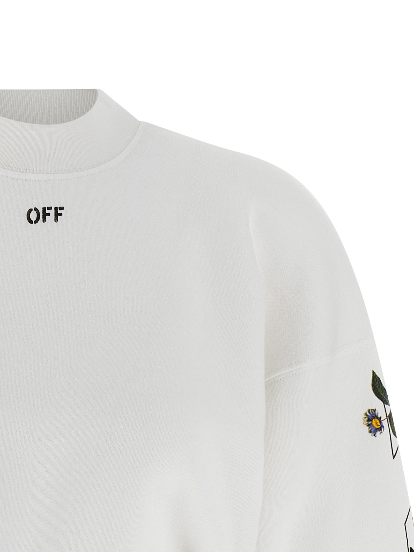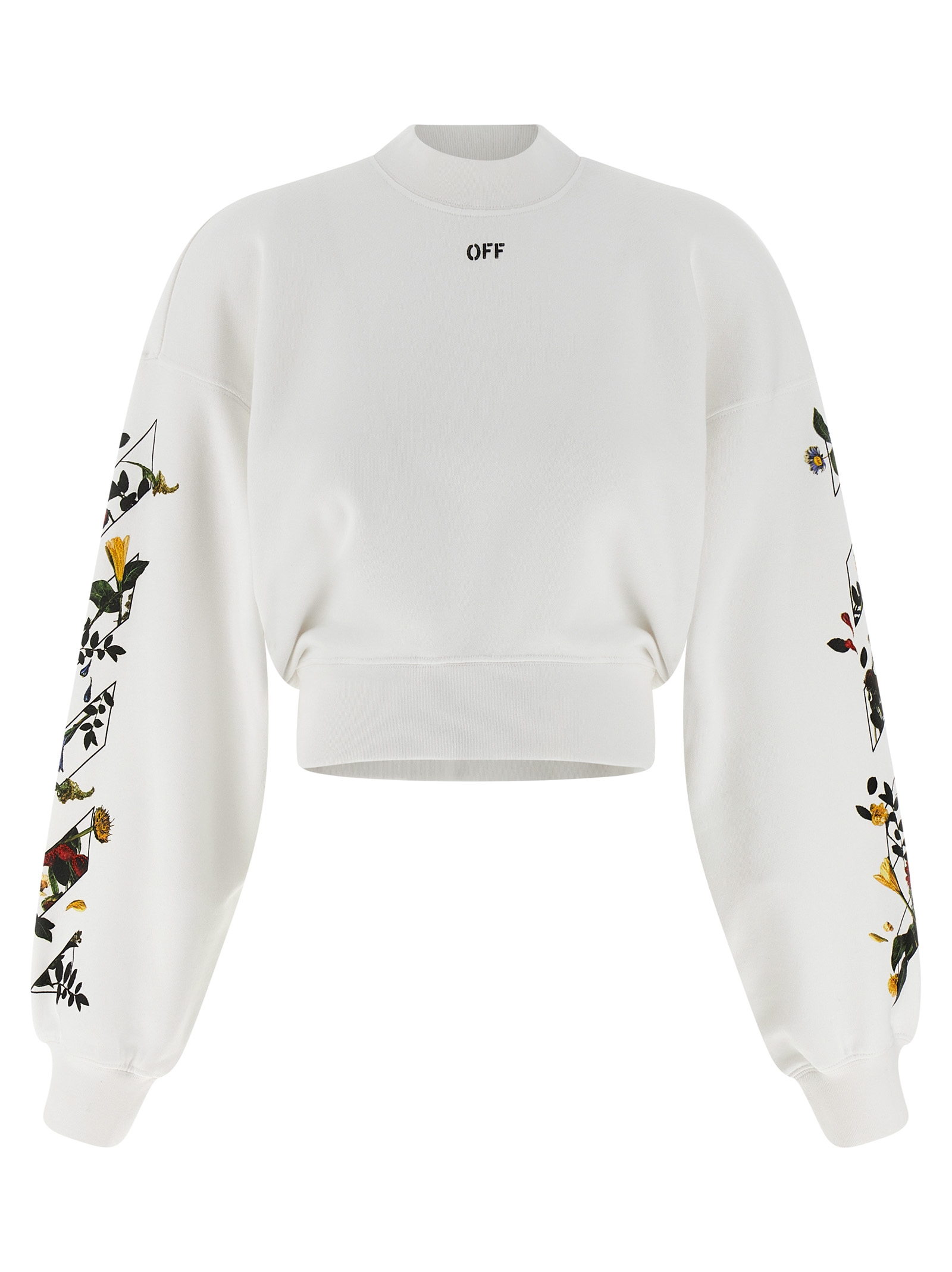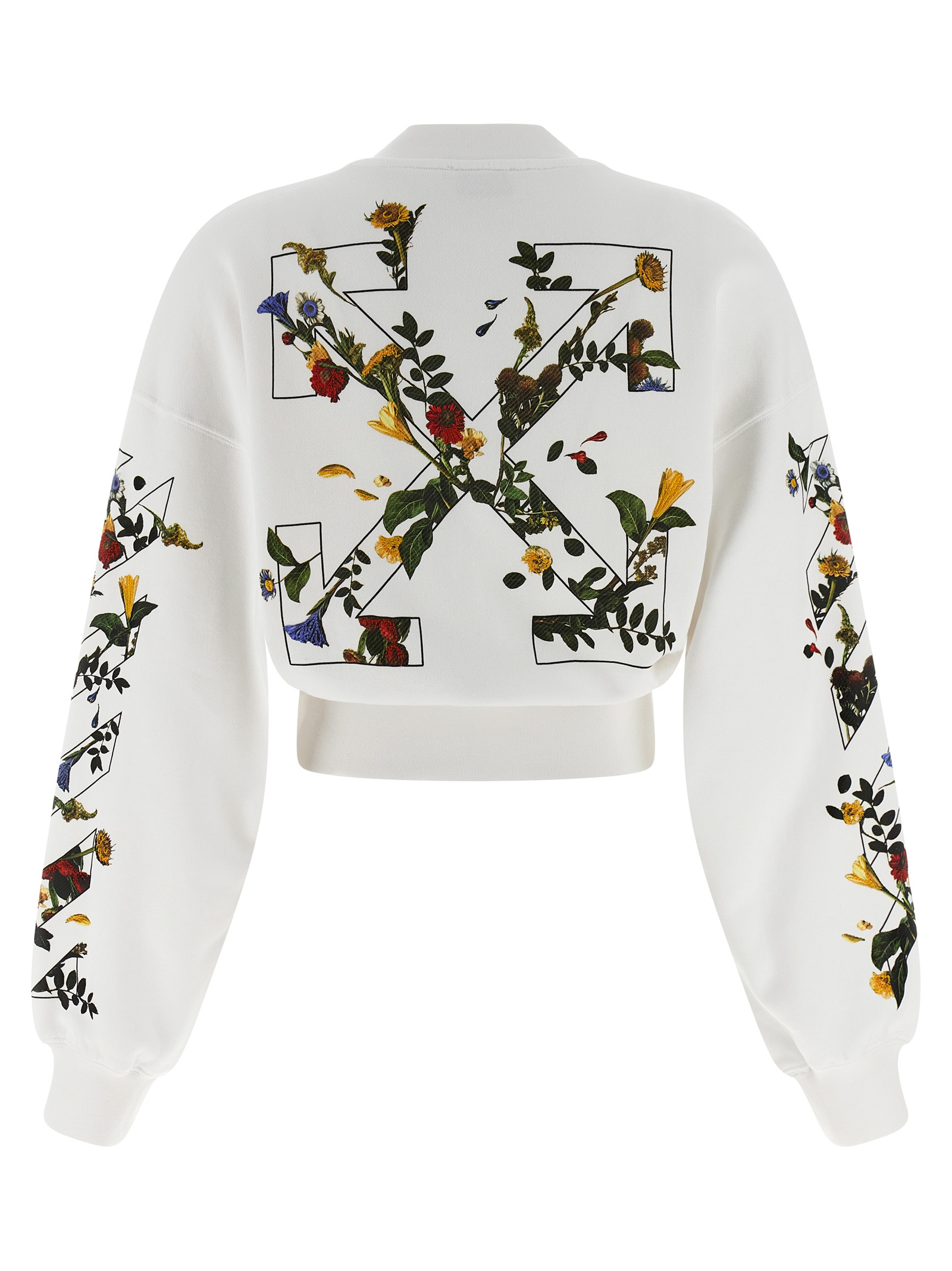 'Flowers Arrow' sweatshirt in brushed cotton with all-over prints and embroideries, crop model, crew neck, long sleeves with cuffs and dropped shoulders.