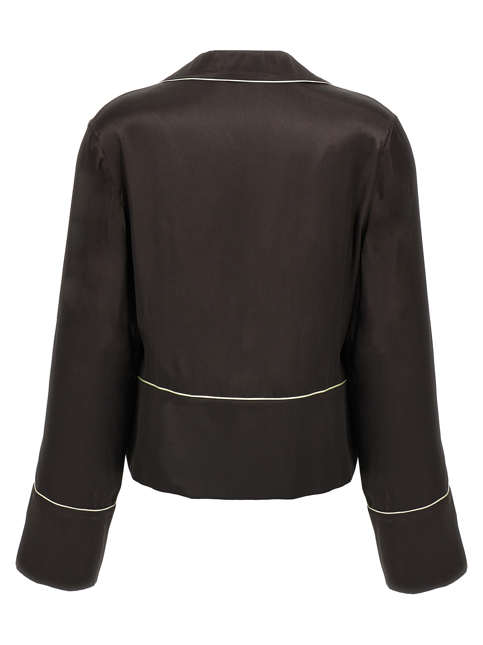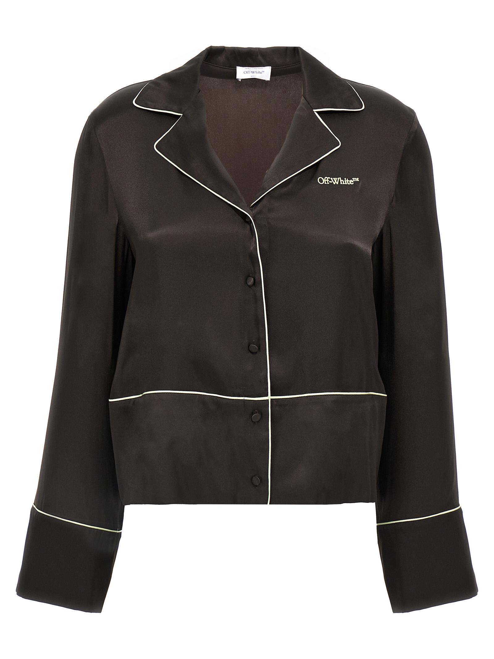 Acetate and silk blend shirt with contrasting details, pajama style, front logo embroidery, button closure, V-neck, long sleeves, pockets.