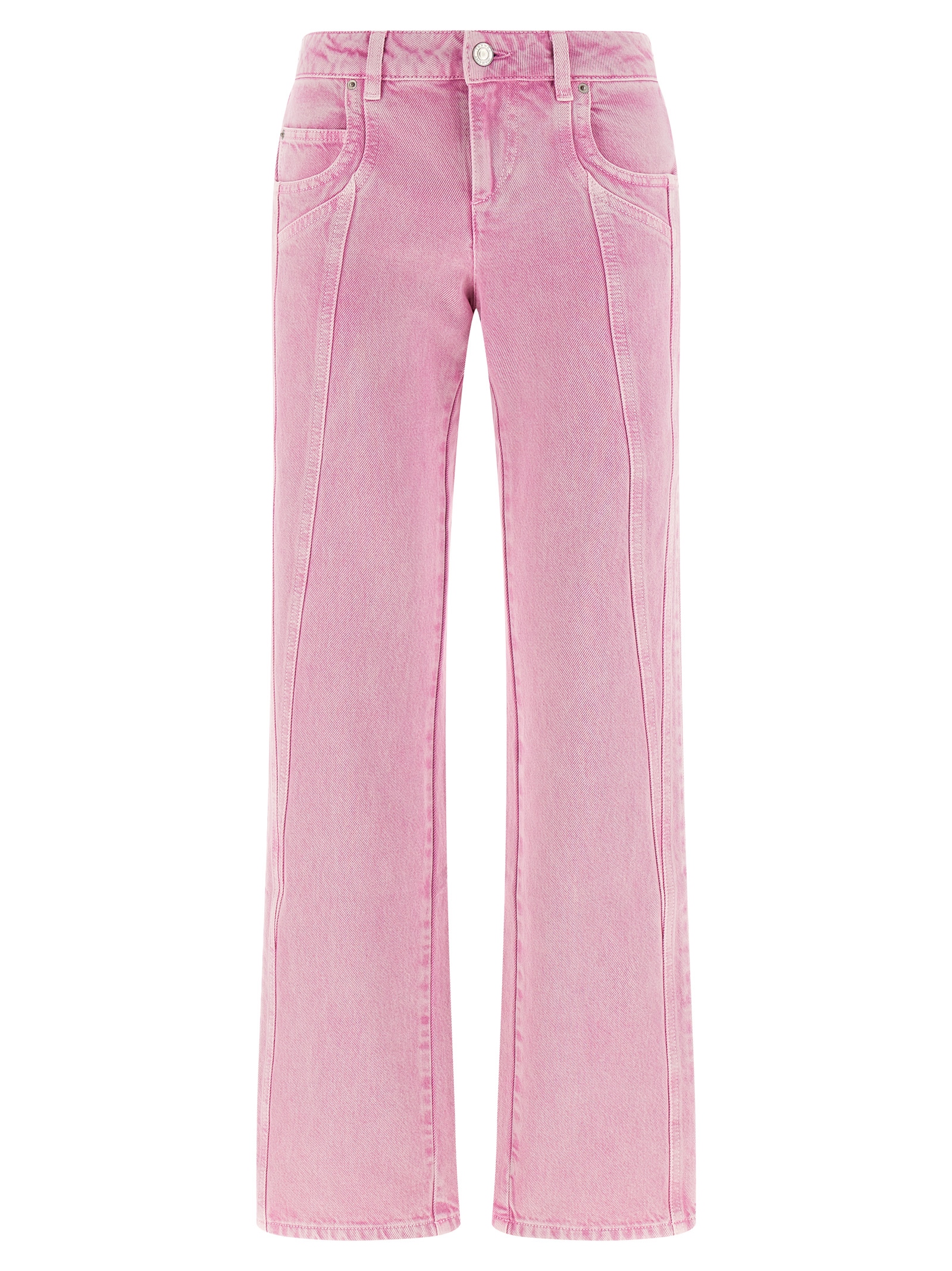 'Jaylis' jeans in delavé cotton denim with straight leg, low waist, front zip and button closure, five pockets, back leather logo tag.