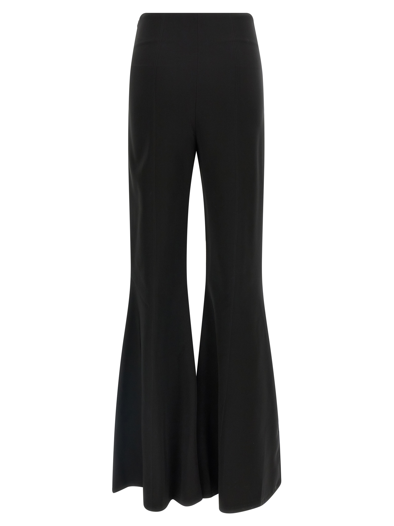 'Venezia' trousers in technical fabric, high waist, wide flared leg, side zip closure.