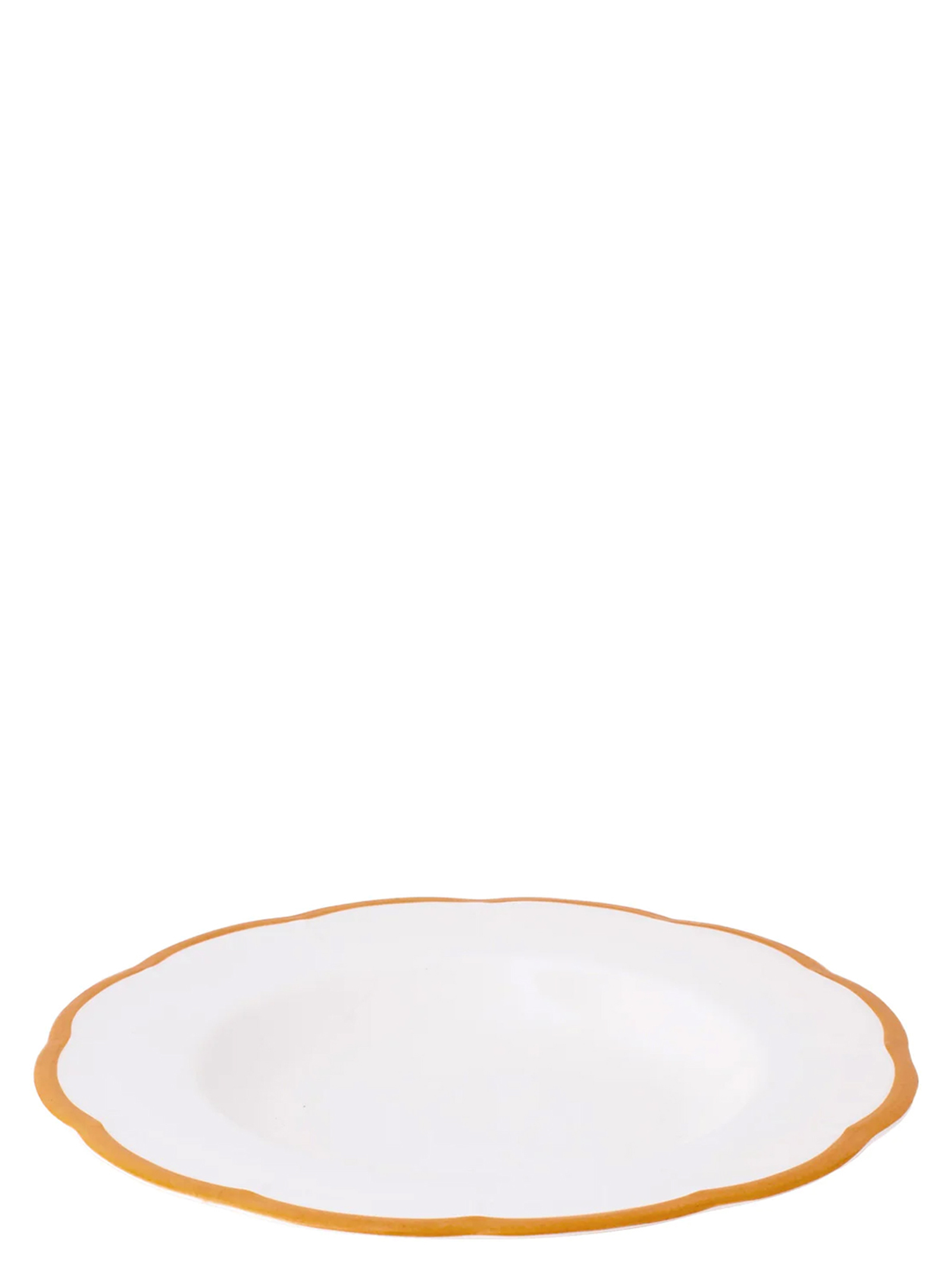 'Petalo' soup plate, white ironstone material with yellow scalloped edge. Suitable for dishwasher, suitable for microwave.Характеристики товара