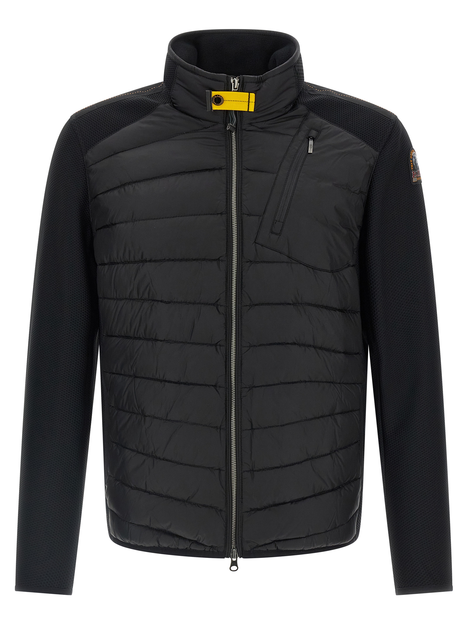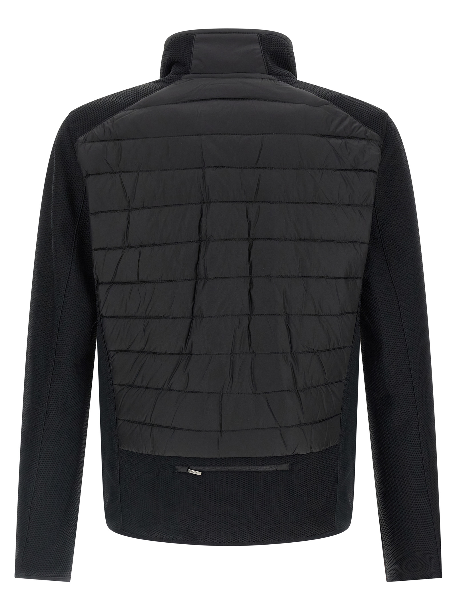 'Jayden' hybrid jacket in semi-glossy quilted nylon 20 denier taffeta slightly padded duck down with polyester elasticized honeycomb inserts, high neck, front zip closure, pockets, long sleeves with applied logo patch. SUSTAINABLE: Product made with recycled materials.