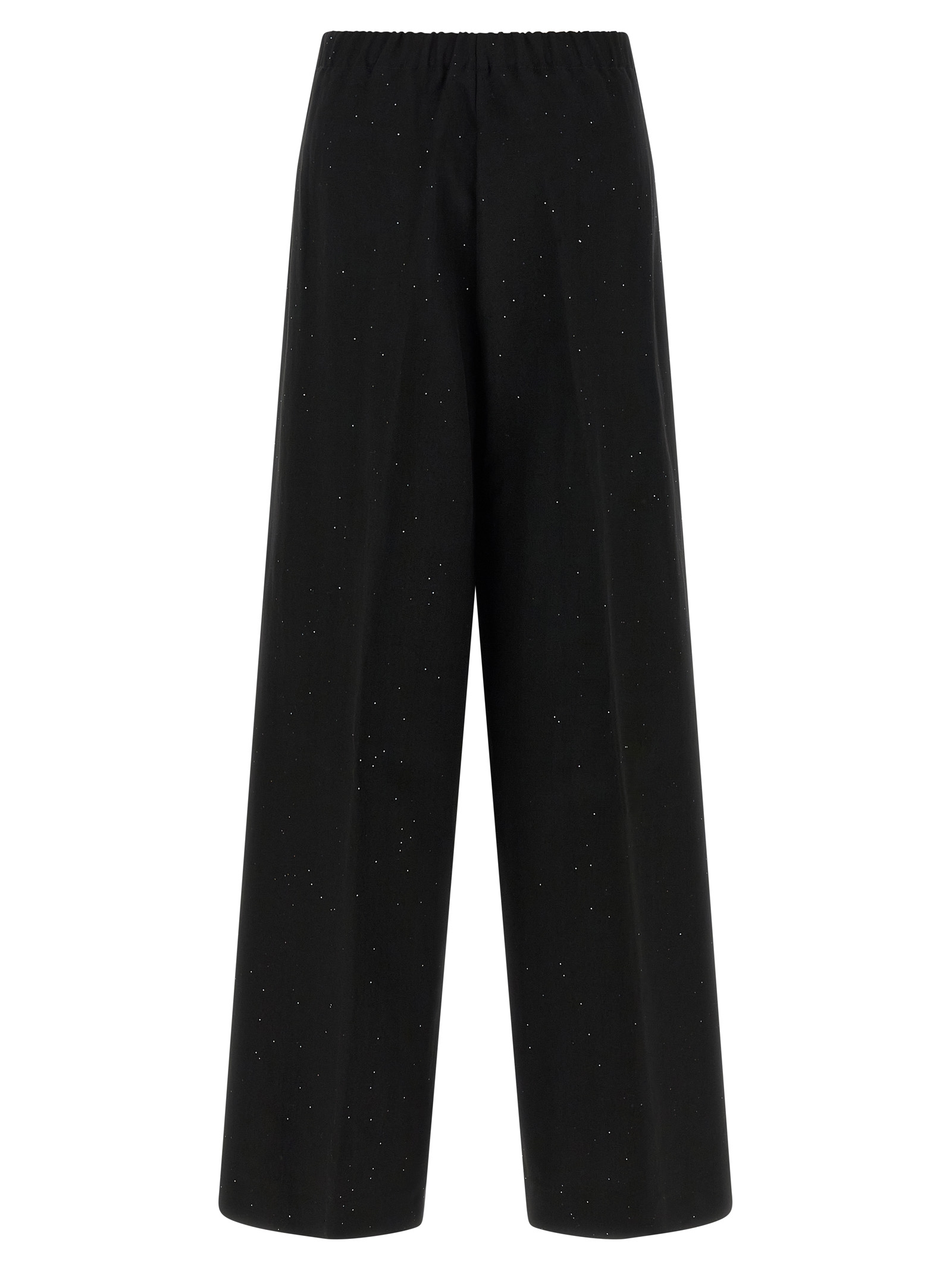 Viscose and linen blend pants with tone-on-tone micro sequin application, wide and straight leg, elastic back waistband, side zip closure.