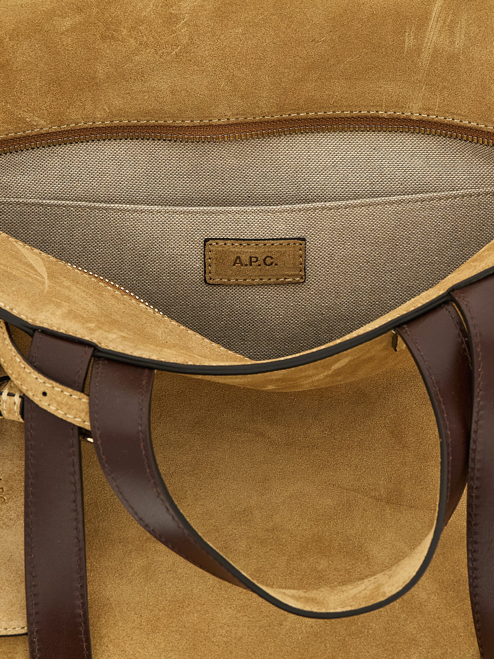 Большая замшевая сумка-шоппер 'Le Drummer' трапециевидной формы, с тисненым логотипом 'A.P.C. Rue Madame Paris' на передней части, с двумя фиксированными ручками для переноски, двумя фиксированными плечевыми ручками, застежкой-молнией сверху и съемным соответствующим кошельком для монет.Характеристики товара