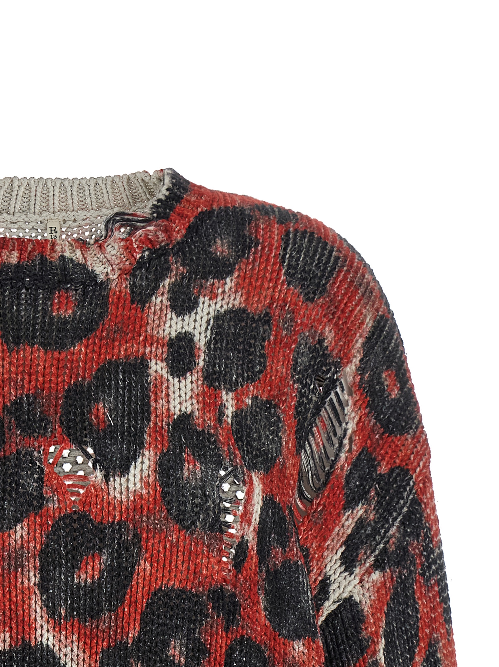 Animal print animal-effect cotton sweater with rips, crew neck, long sleeves with cuffs and dropped shoulder.