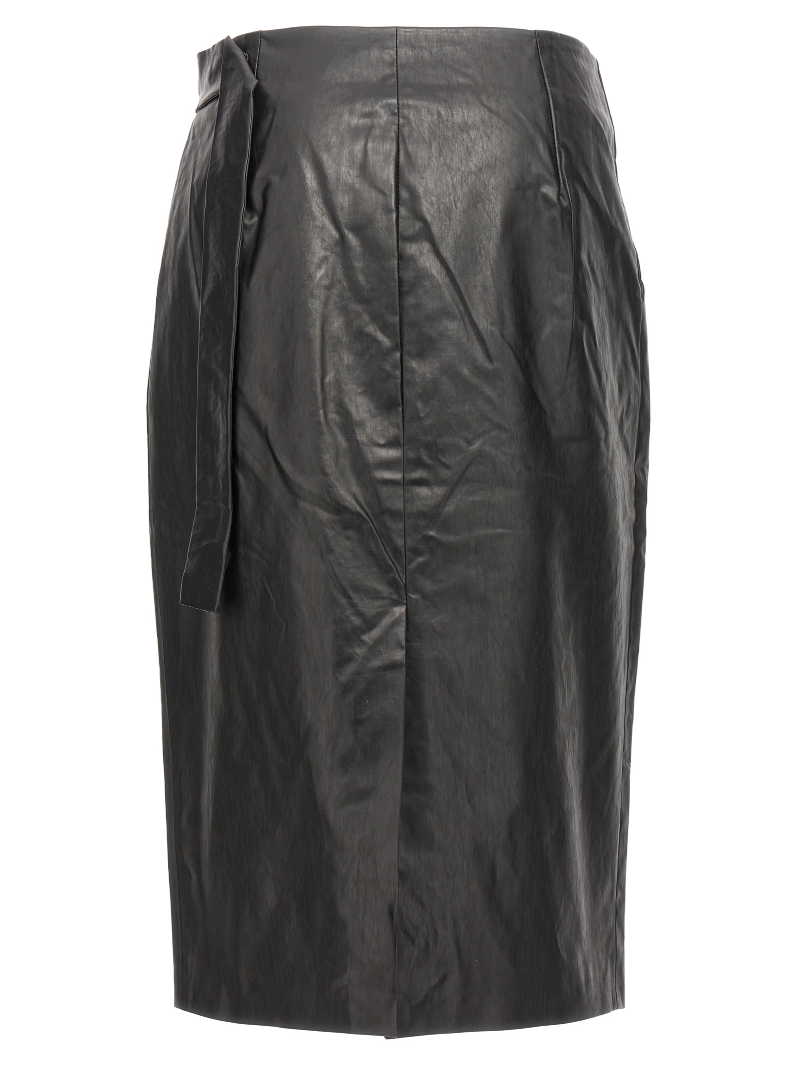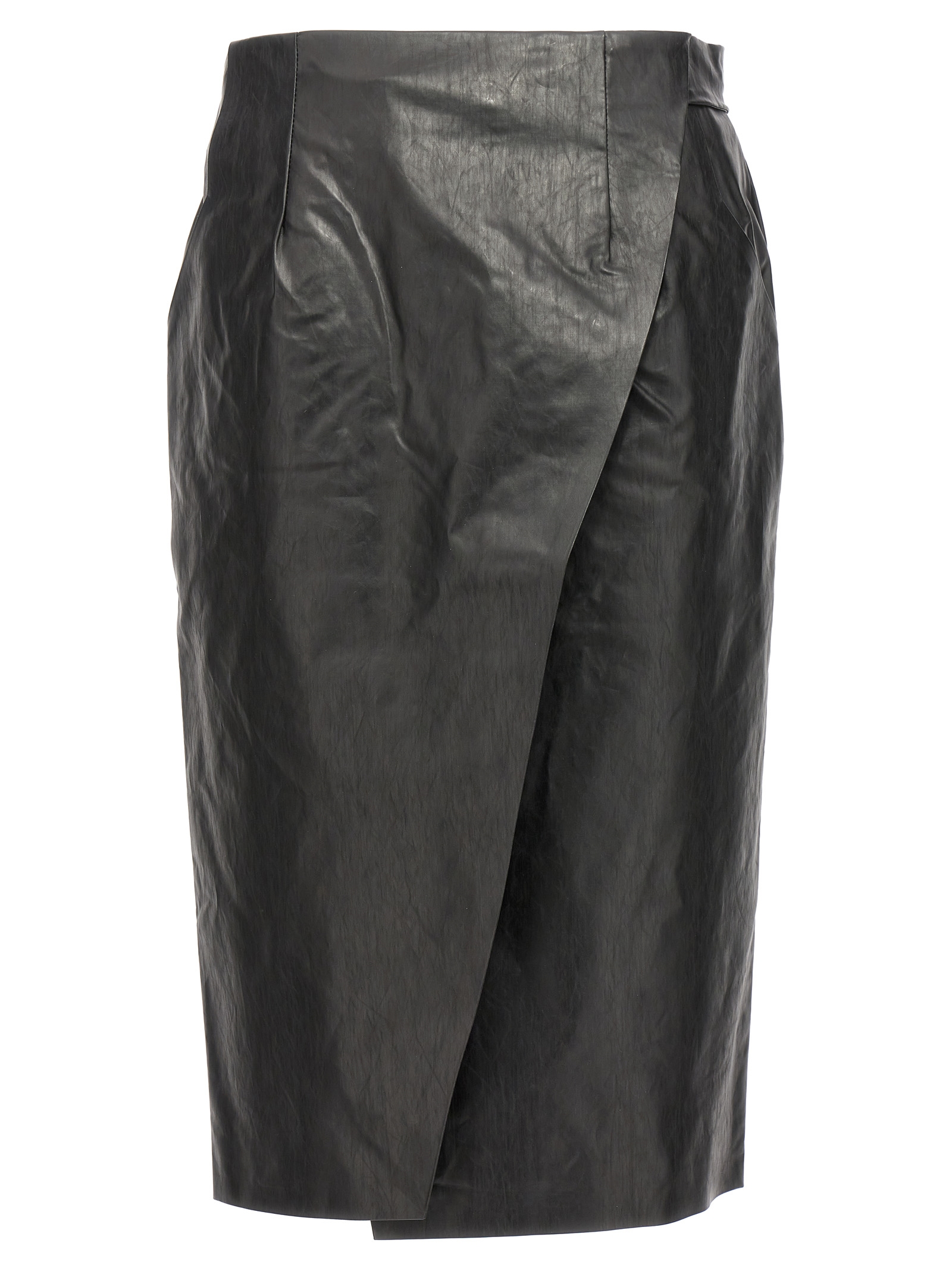 'Wrap Skirt Oil' skirt in oil-coated cotton blend canvas with wallet closure, pockets,