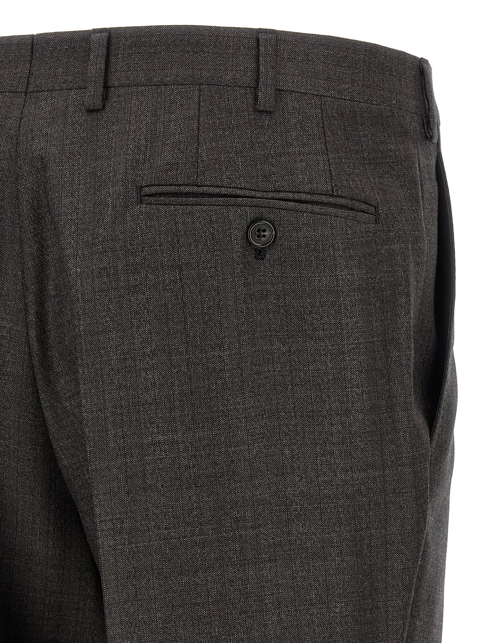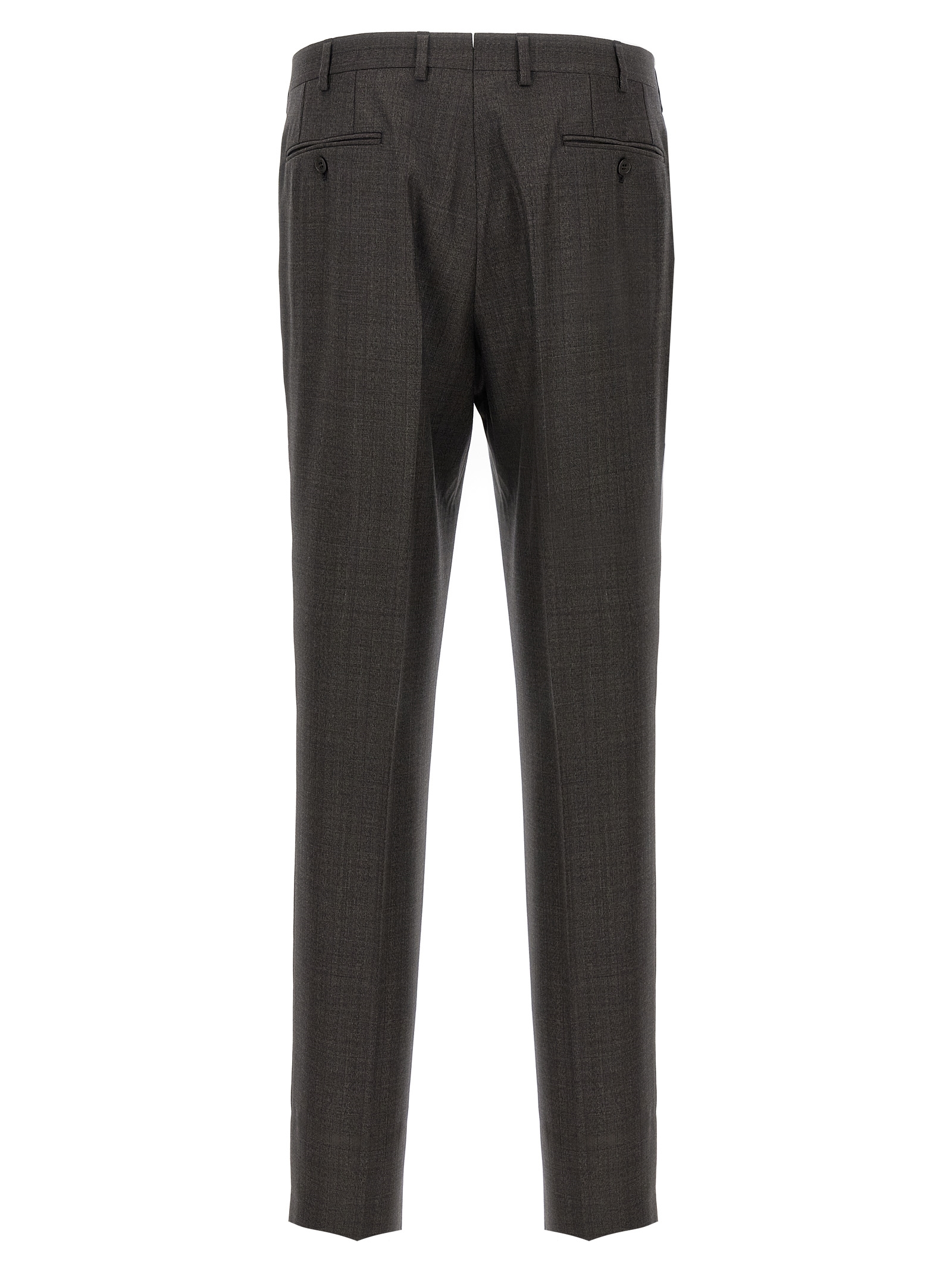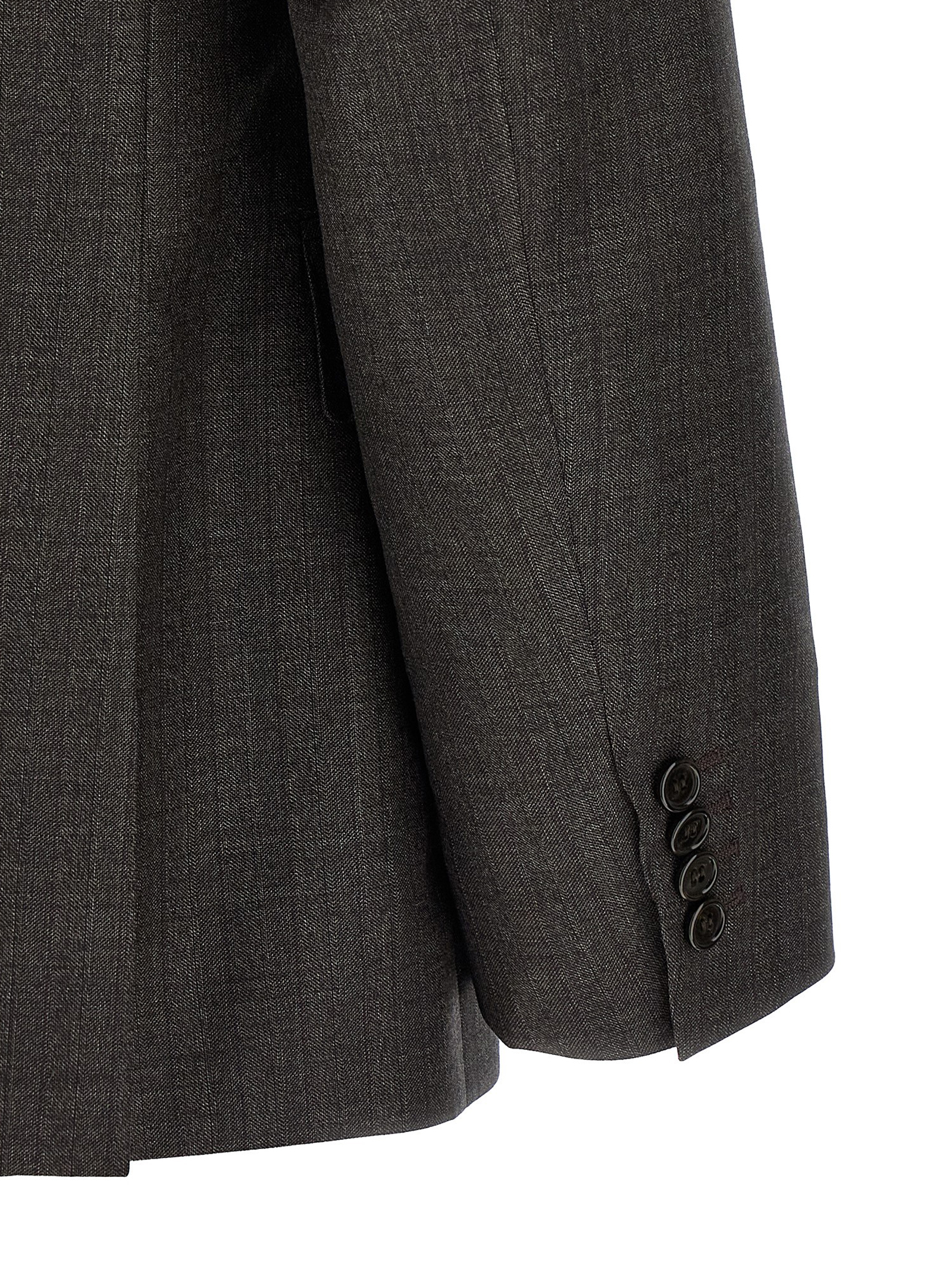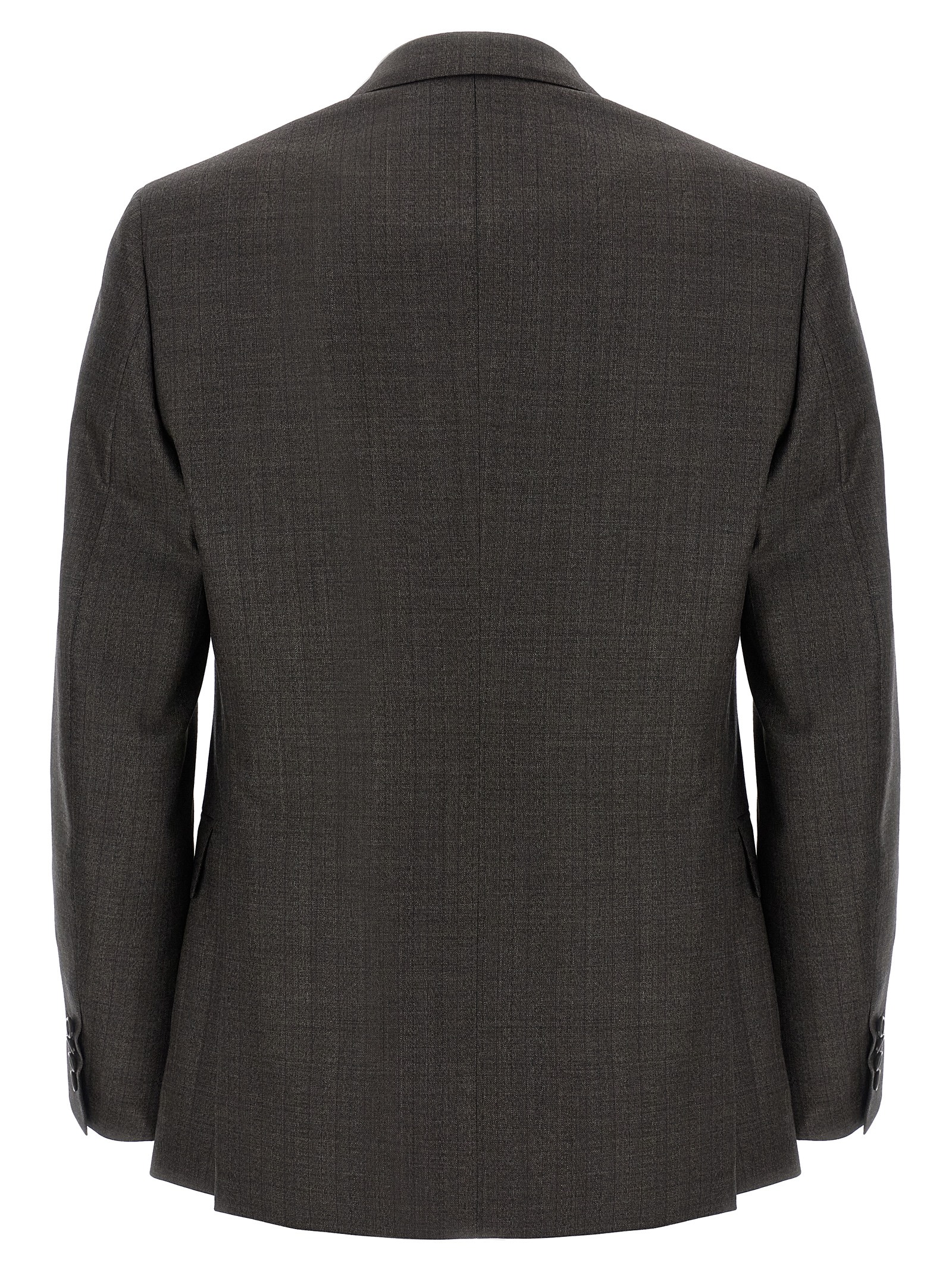 Wool grisaille 'Trevi' dress consisting of a blazer with lightweight construction and relaxed fit, single-breasted style with front button closure, mirror lapels, structured shoulder strap, cupro lining, breast pocket, flap pockets, buttonhole cuffs, back slits and tight flat front pants, stretched pleat, front 'americane pockets', back welt pockets, zip hook and buttons closure on the front.Характеристики товара