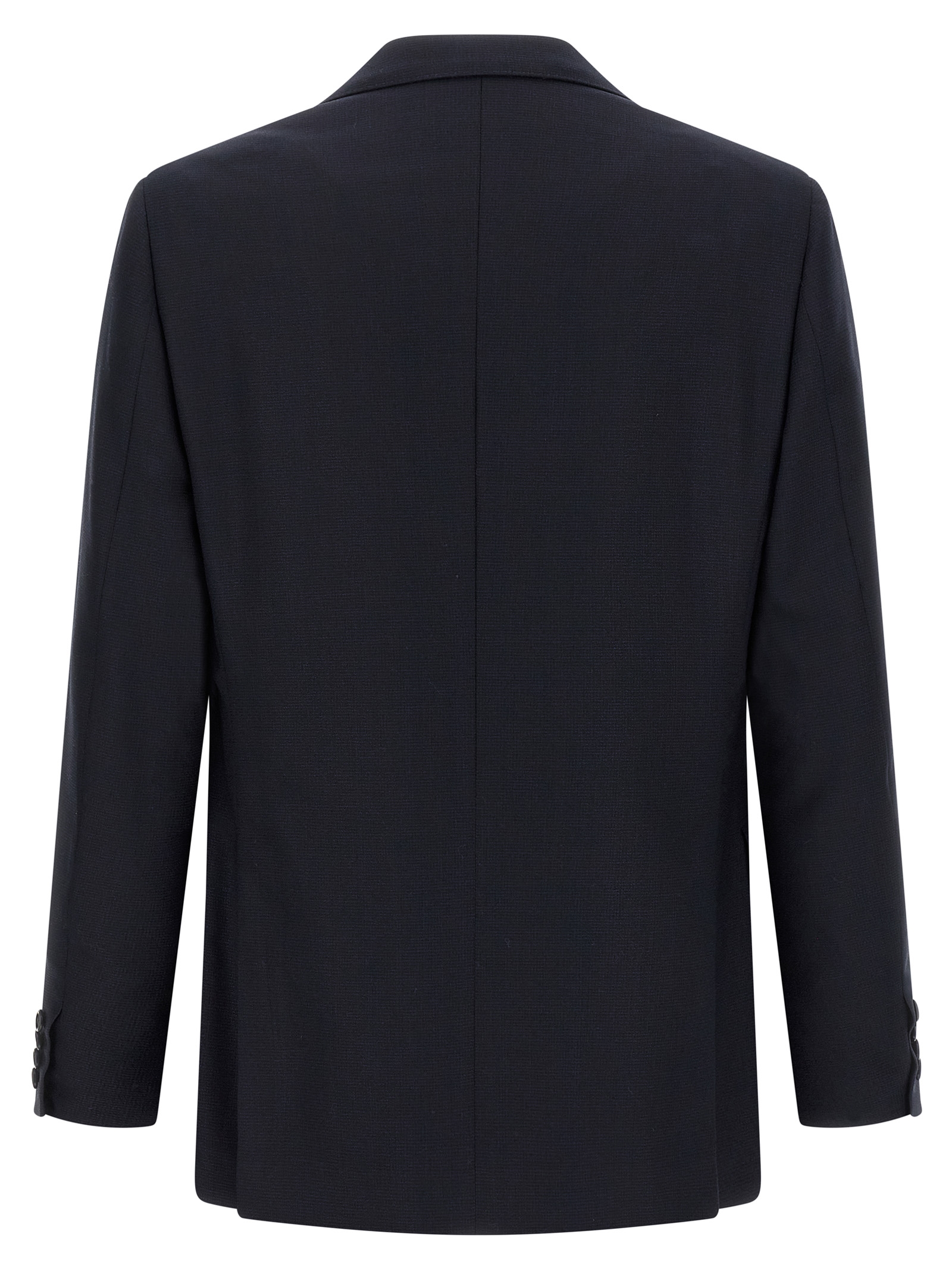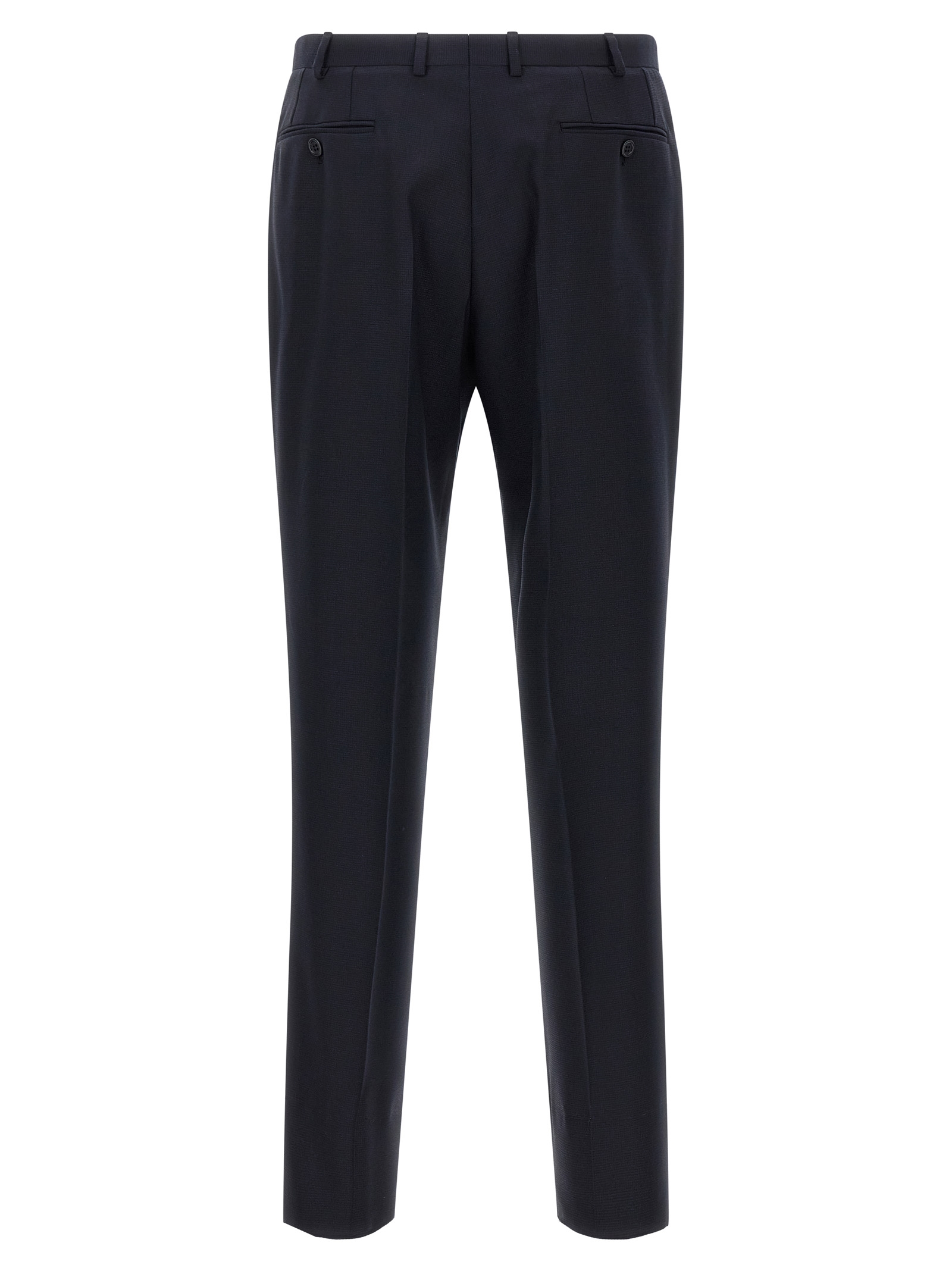 'Trevi' wool dress consisting of single-breasted blazer with lightweight construction and relaxed fit, front button closure, mirror lapels, structured shoulder strap, cupro lining, breast pocket, flap pockets, buttonhole cuffs, back slits and tight flat front pants, stretched pleat, front 'americane pockets', back welt pockets, zip hook and buttons closure on the front.Характеристики товара