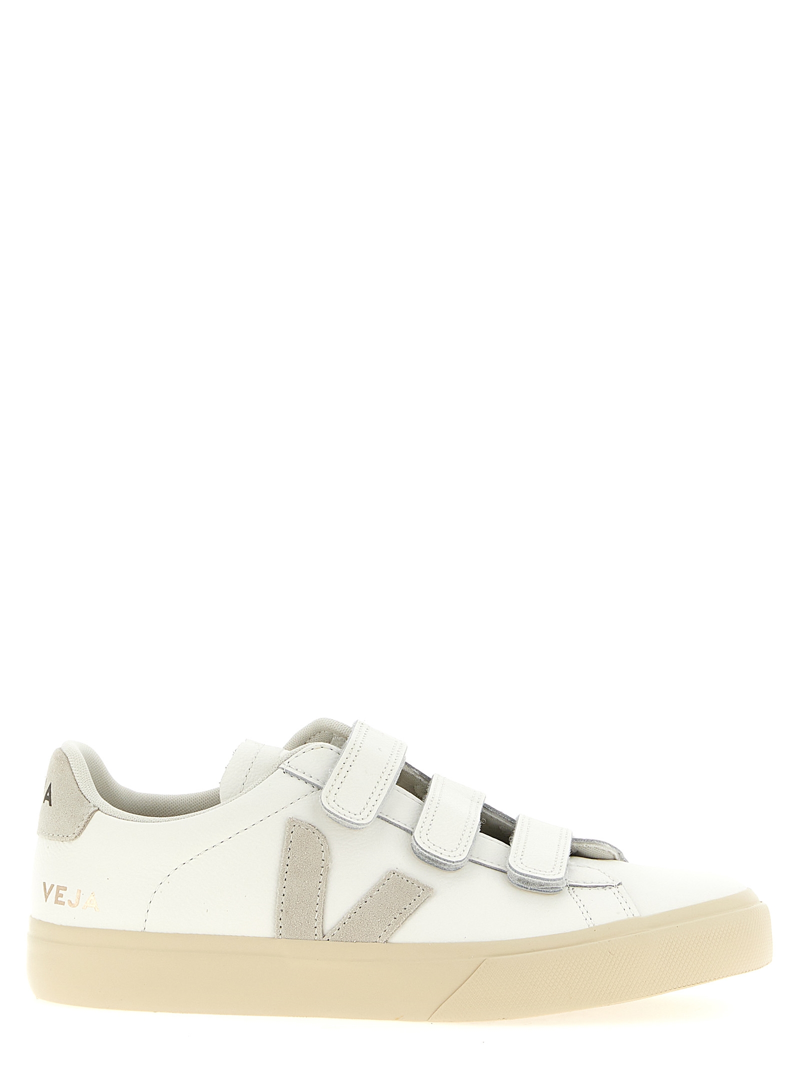ChromeFree cowhide 'Recife' sneakers with contrast suede heel and side logo, strap closure, rubber sole.