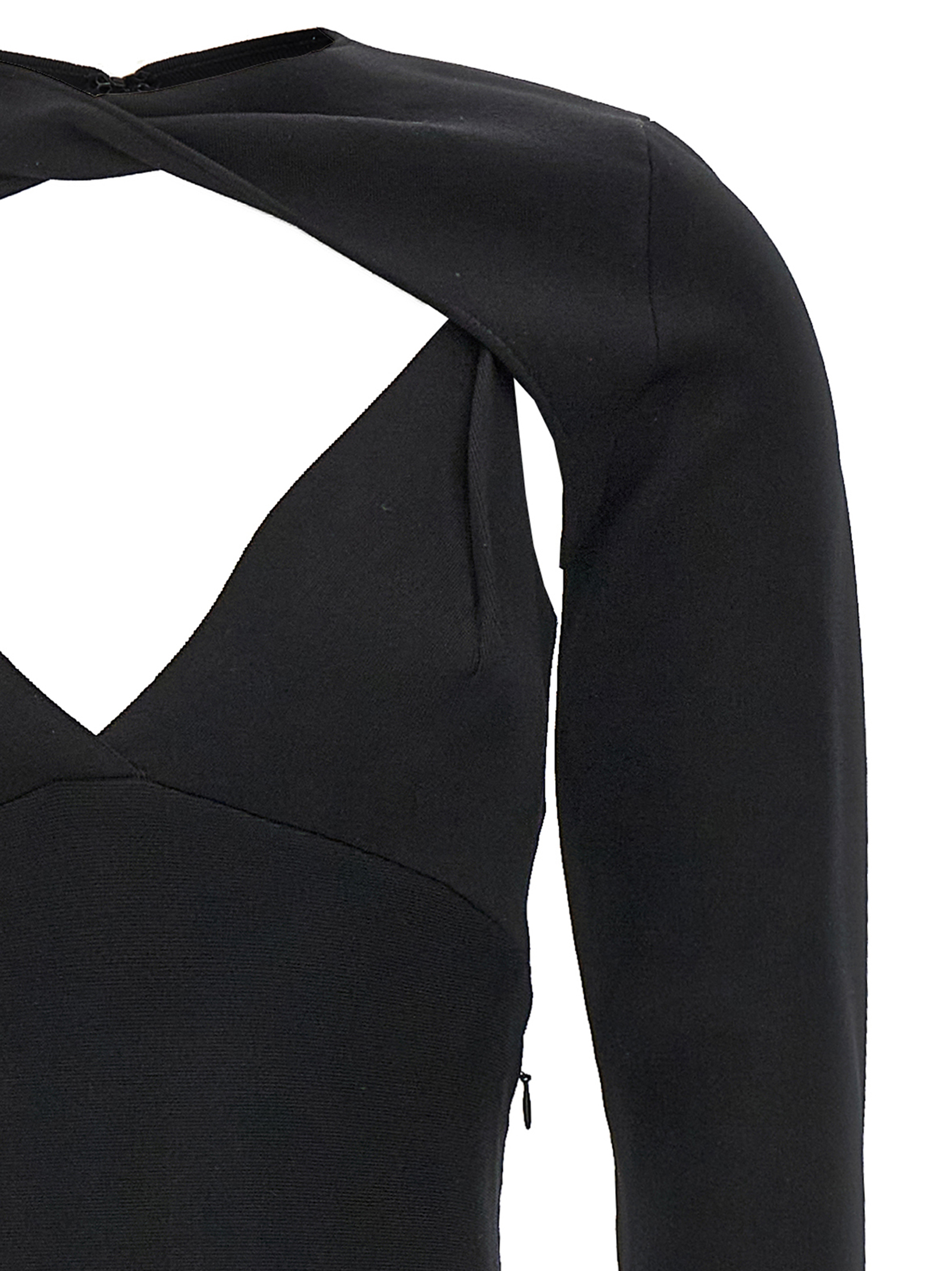 Stretch viscose blend knit midi dress, with heart-shaped neckline, side zip closure, and flared hem.