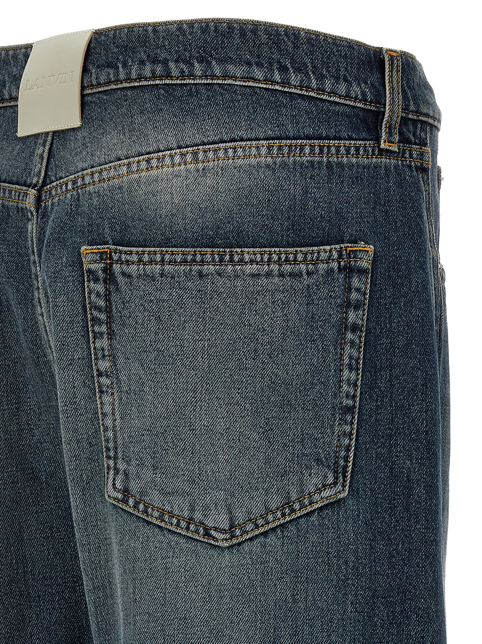 'Twisted Leg' cotton denim jeans with button closure, five pockets, leather logo tag.