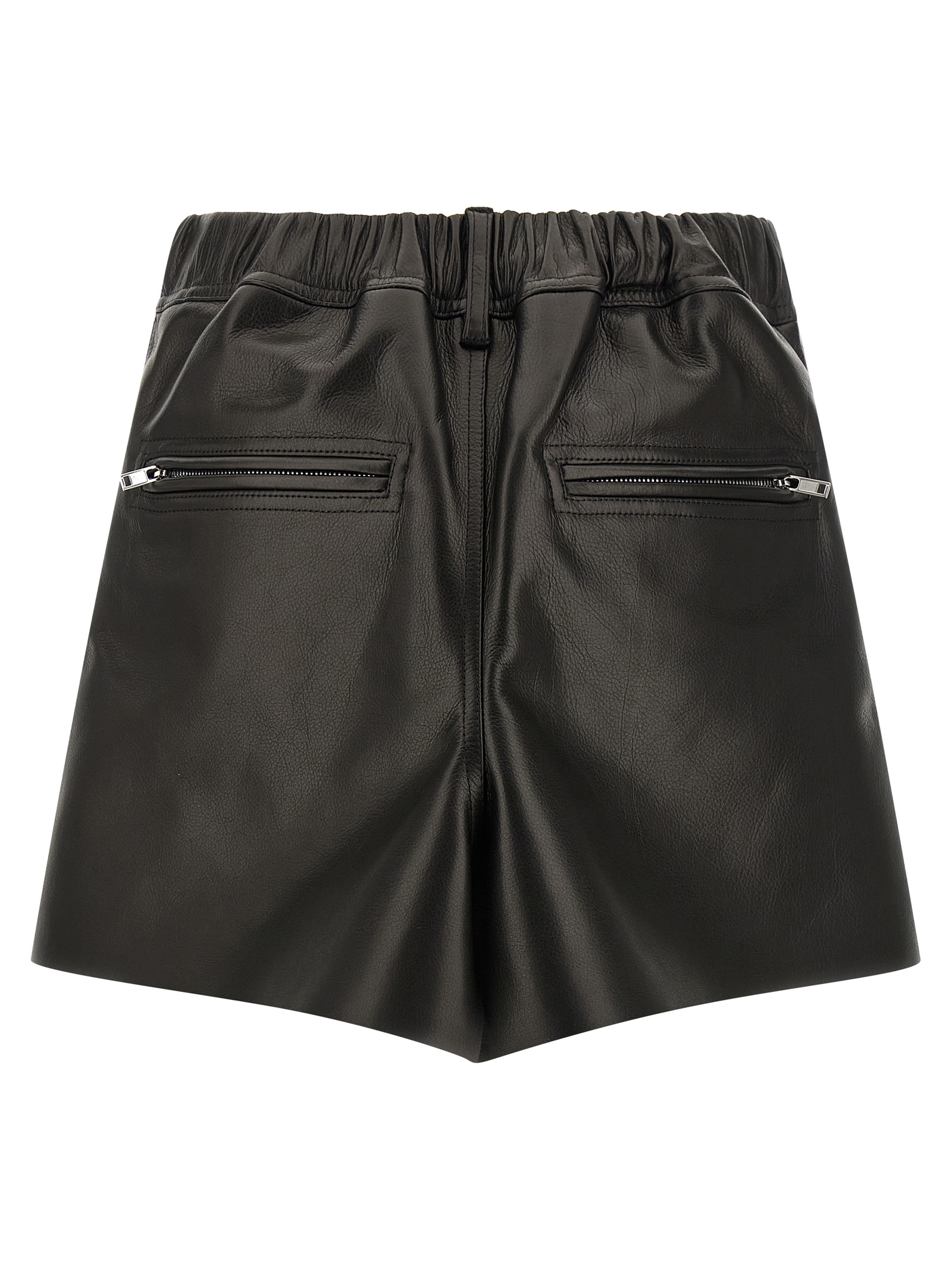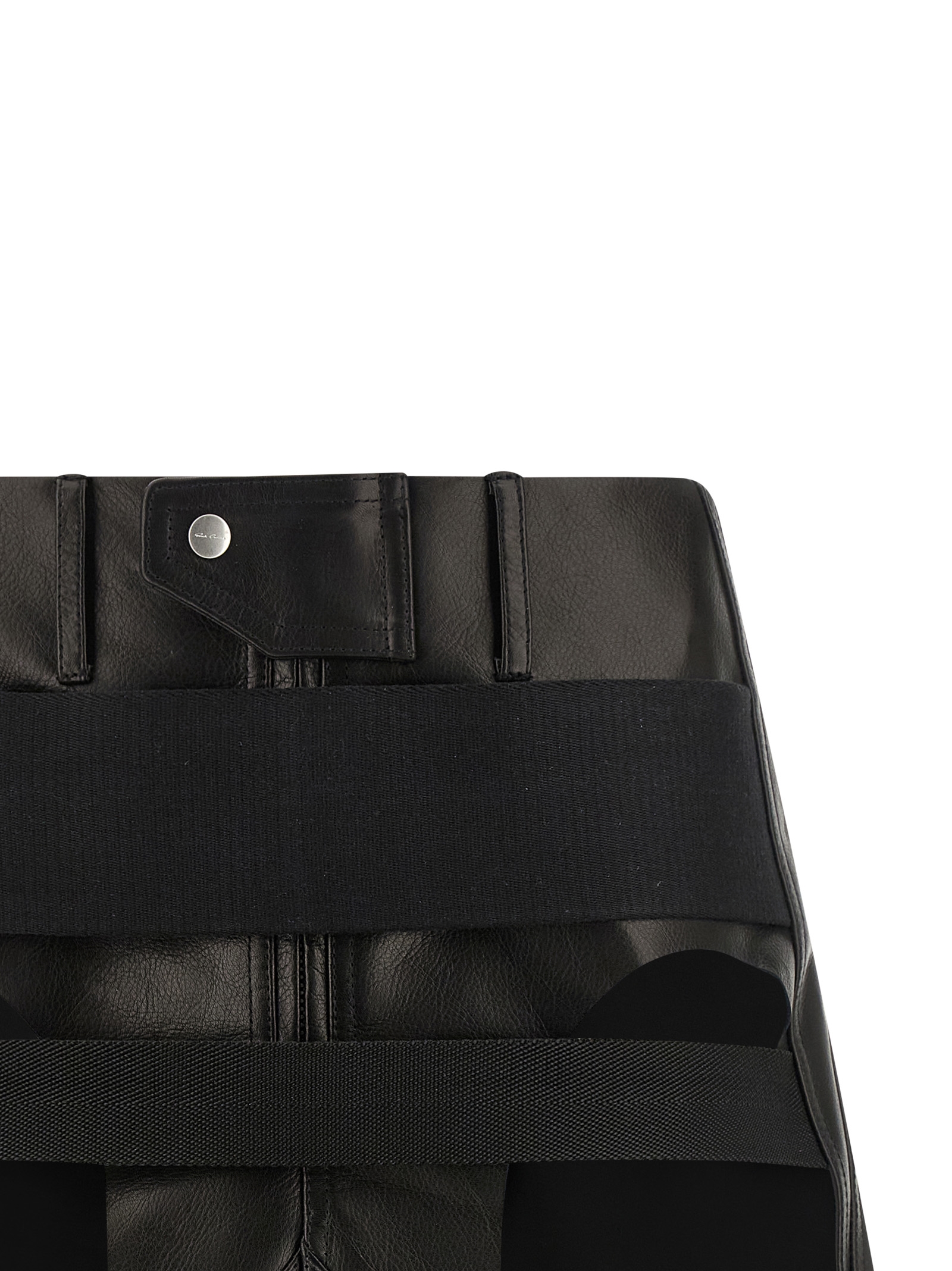 Кожаная мини-юбка, подкладка из купро, ленточная отделка и тональная гросгрейновая лента спереди, дизайн «Temple» спереди, застежка на молнию и кнопки, эластичный пояс и разрез сзади, карманы и асимметричный подол.Характеристики товара
