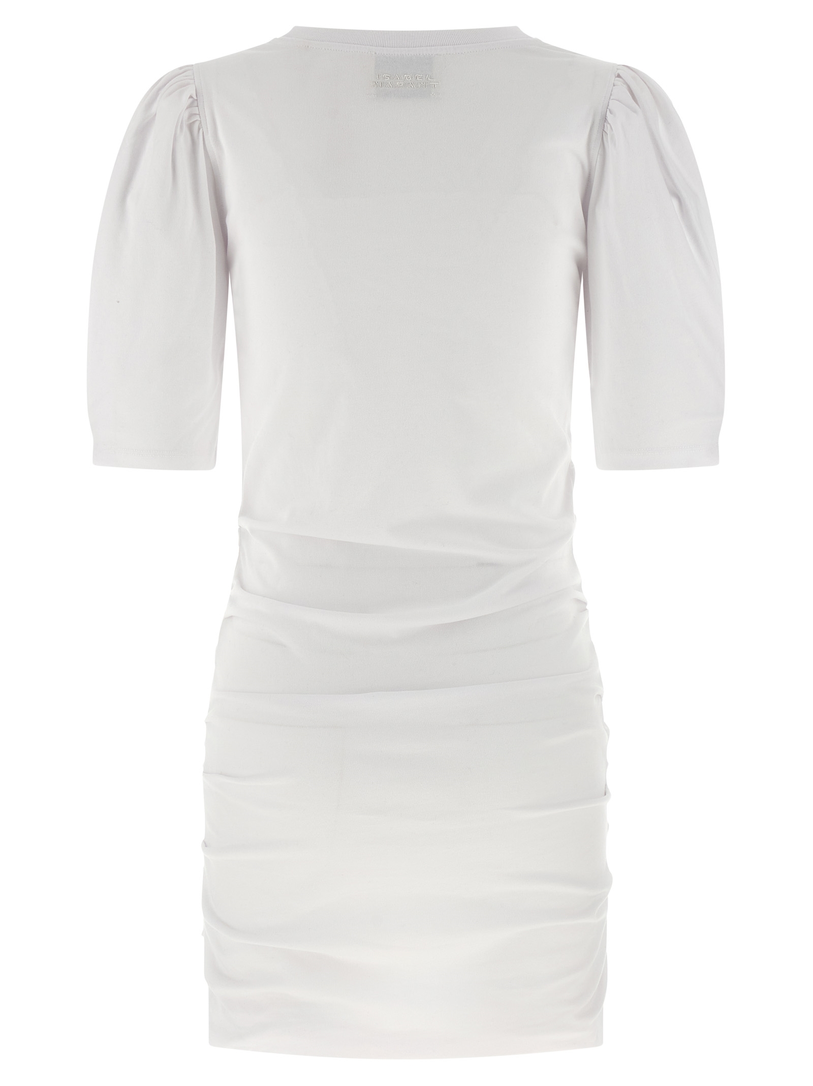 'Mylda' cotton jersey mini dress with side draping, round neckline, 3/4 sleeves with gusset and crinkled shoulder, tone-on-tone logo embroidery at the back. SUSTAINABLE: This product is made with organic cotton.