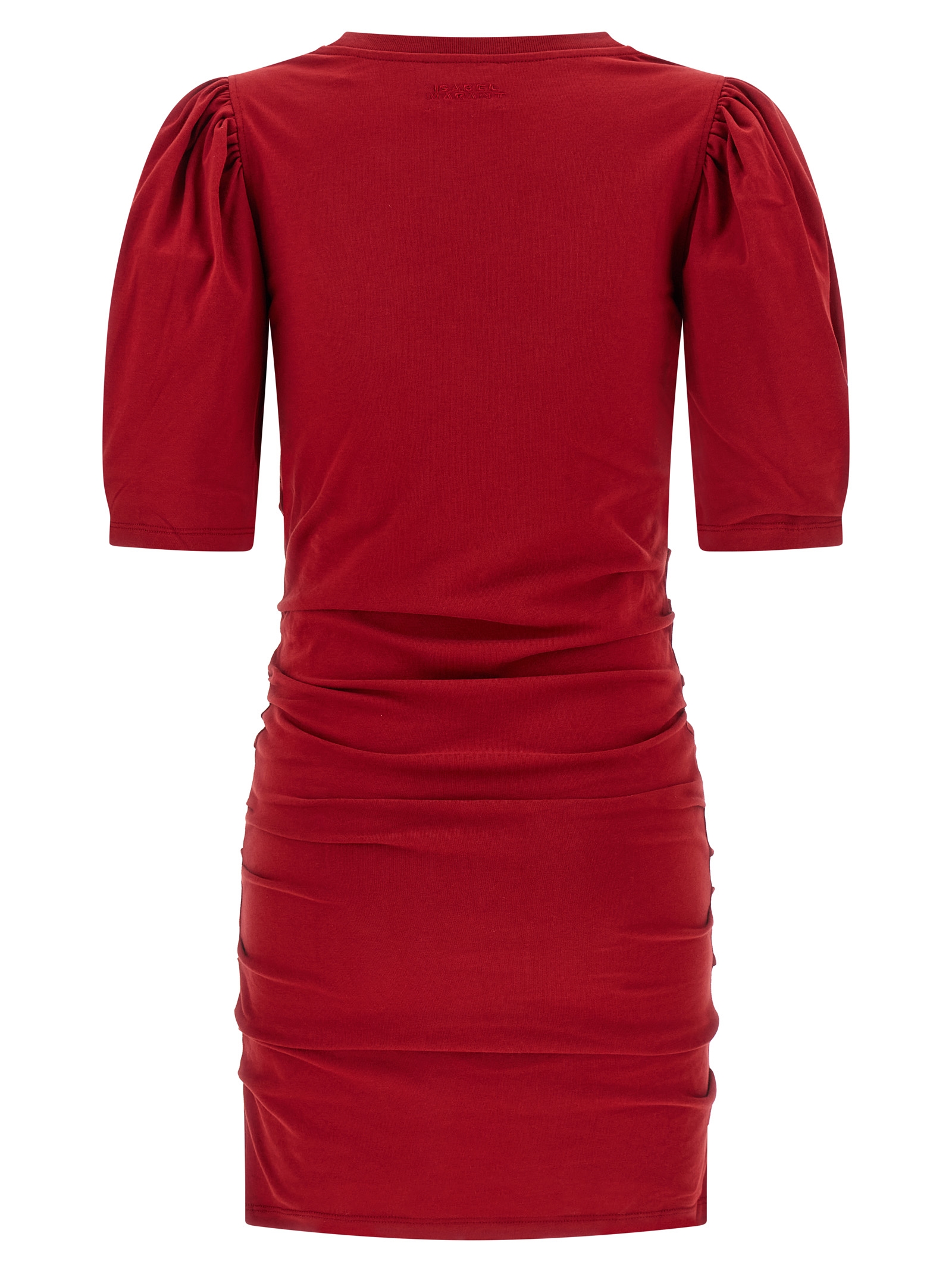 'Mylda' cotton jersey mini dress with side draping, round neckline, 3/4 sleeves with gusset and crinkled shoulder, tone-on-tone logo embroidery at the back. SUSTAINABLE: This product is made with organic cotton.