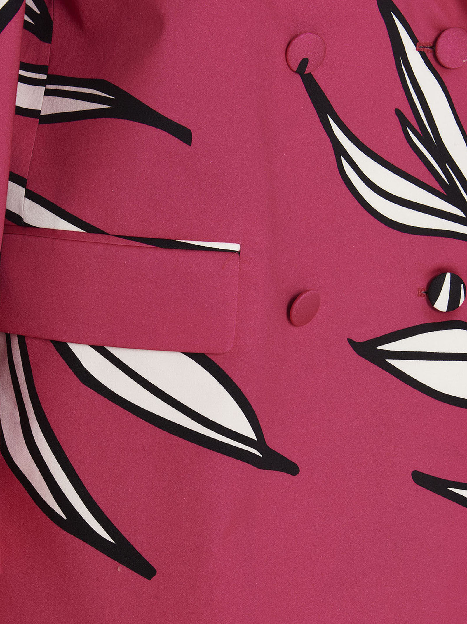 Cotton blazer jacket with contrast floral print, a double breast style and a covered button closure.