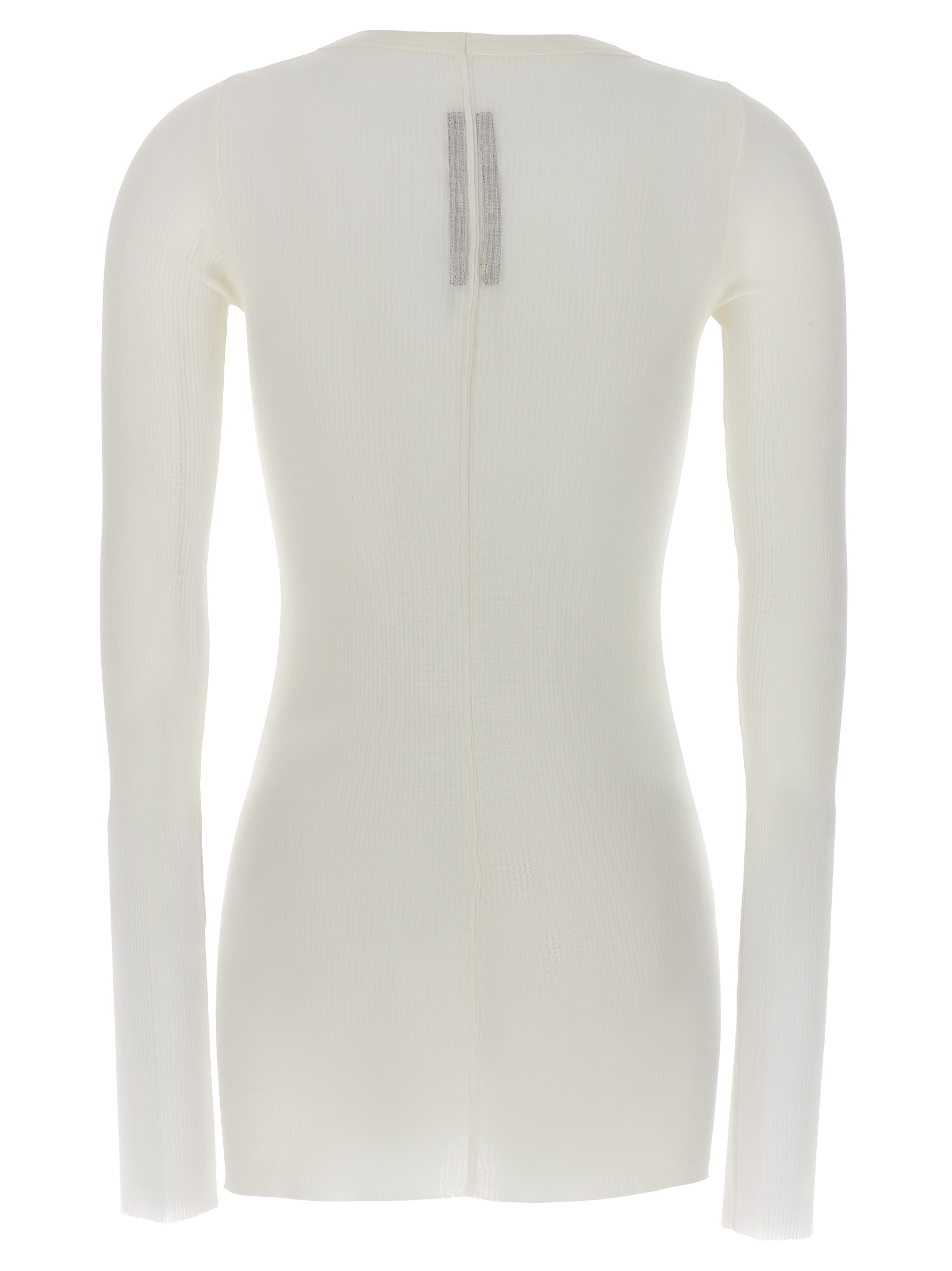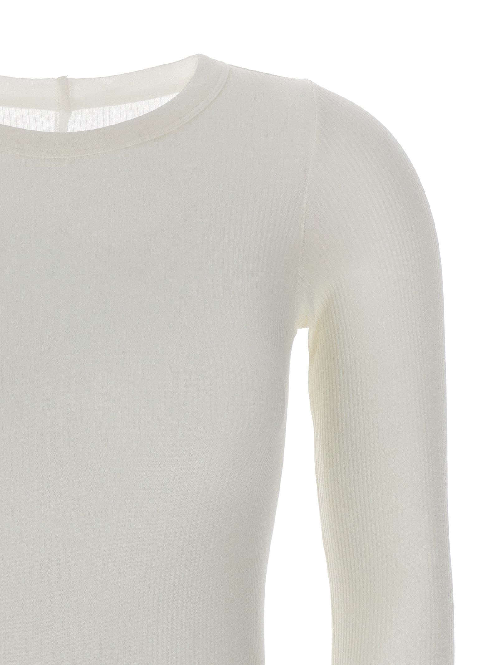 'Rib LS T' ribbed viscose and stretch silk blend t-shirt, raw cut hem, crew neck, long sleeves.