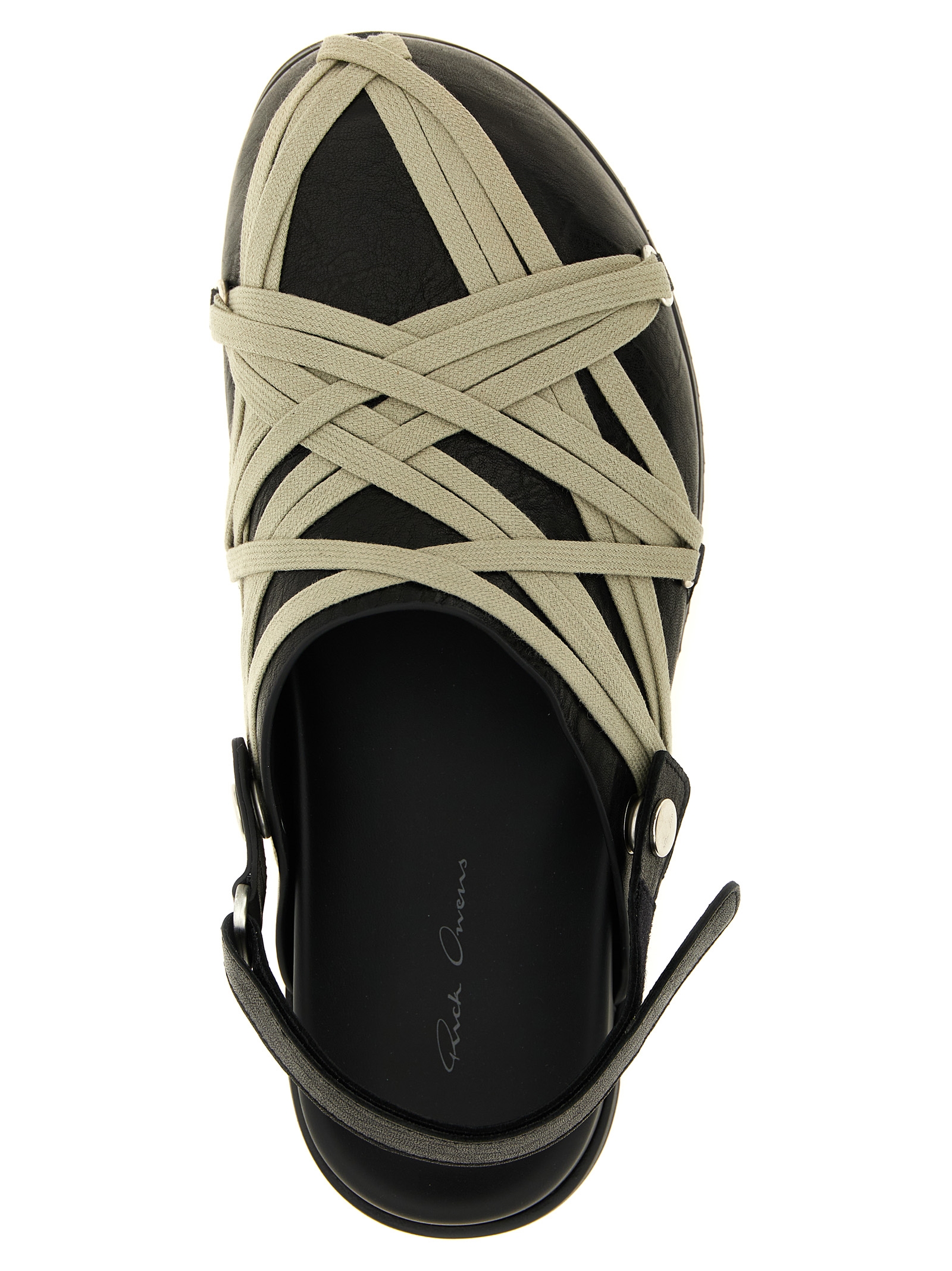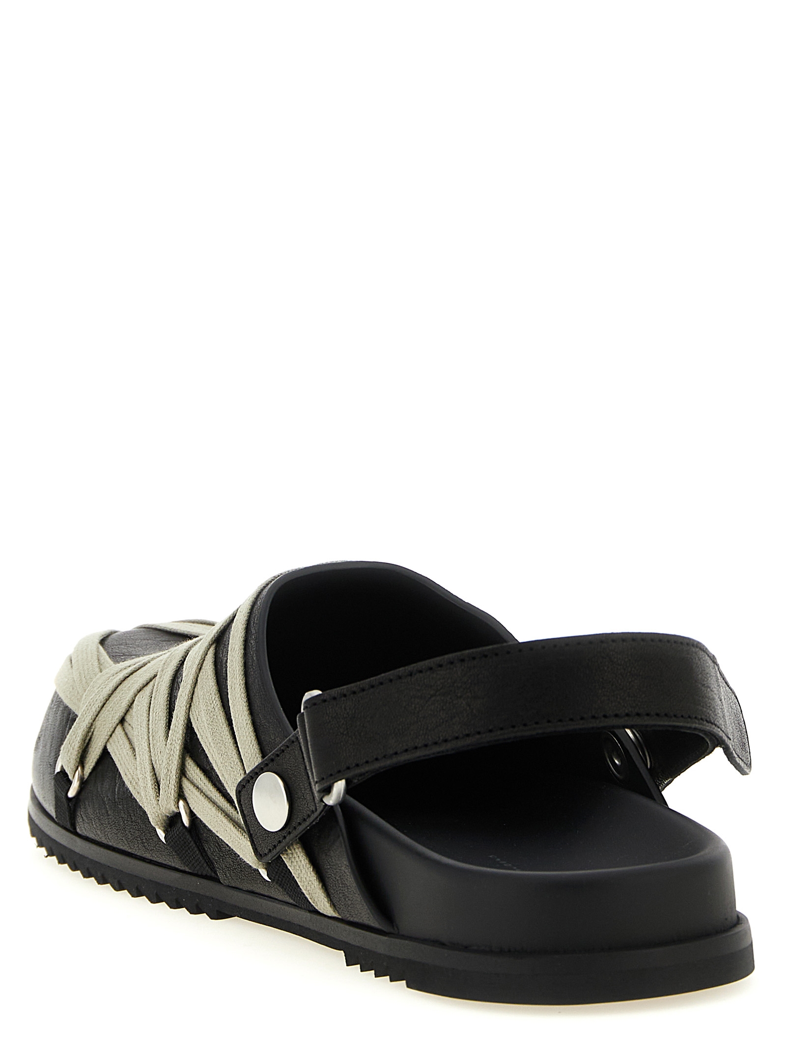 'Megalace Mule Granola' hammered leather mules with front lace detail, adjustable strap with velcro, rubber sole.