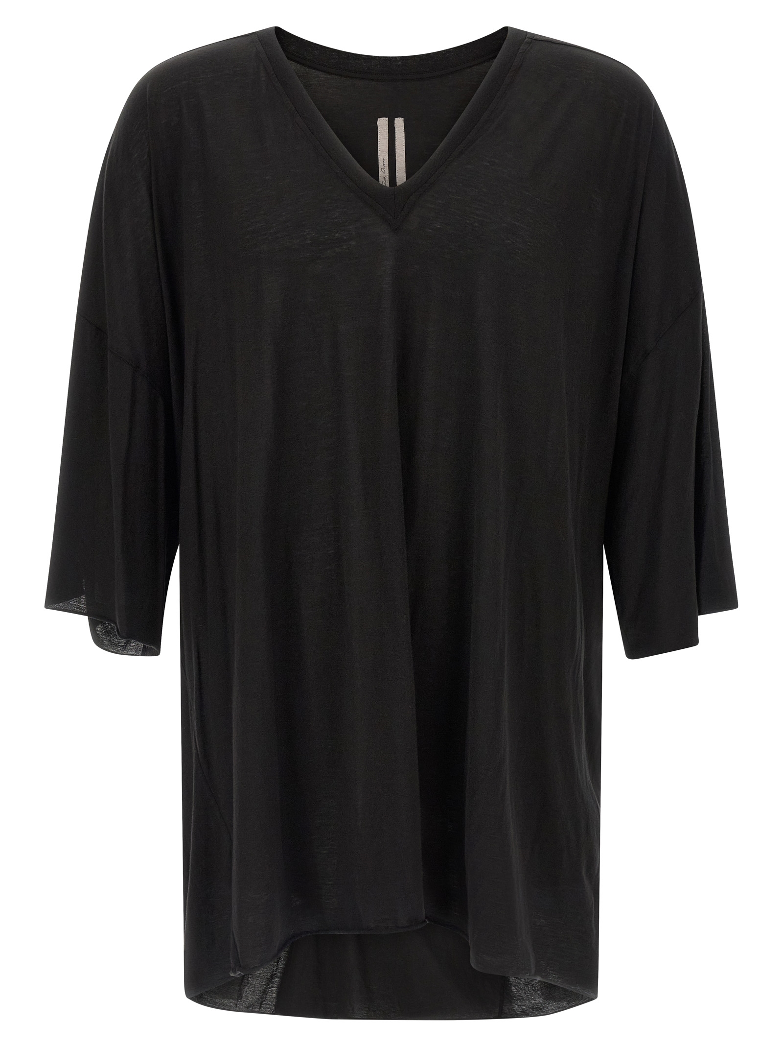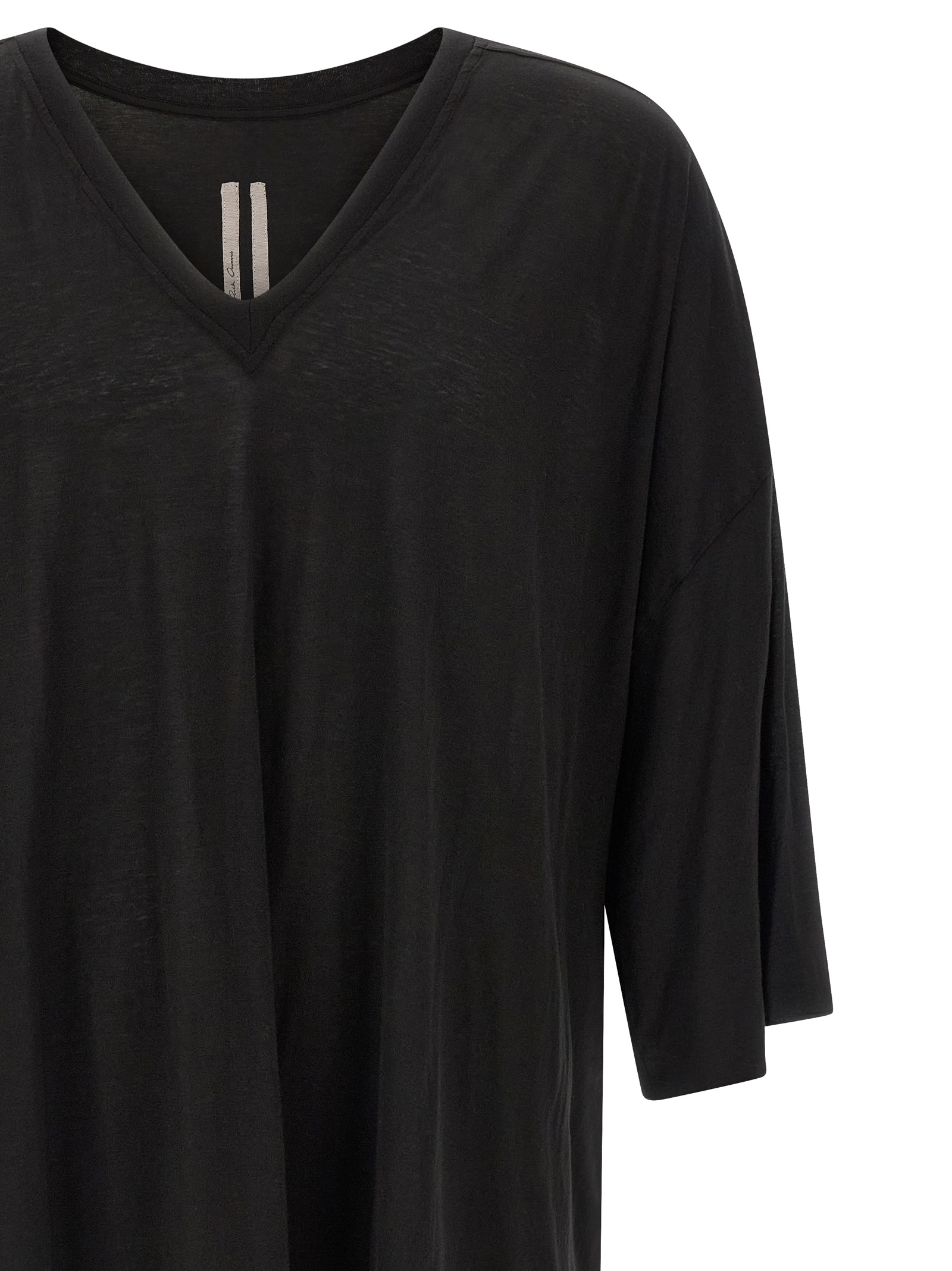 'V Tommy T' garment-dyed semi-transparent cotton gauze jersey t-shirt, wide V-neck, short sleeves with dropped shoulders, raw cut hem. SUSTAINABLE: This product is made with organic cotton.