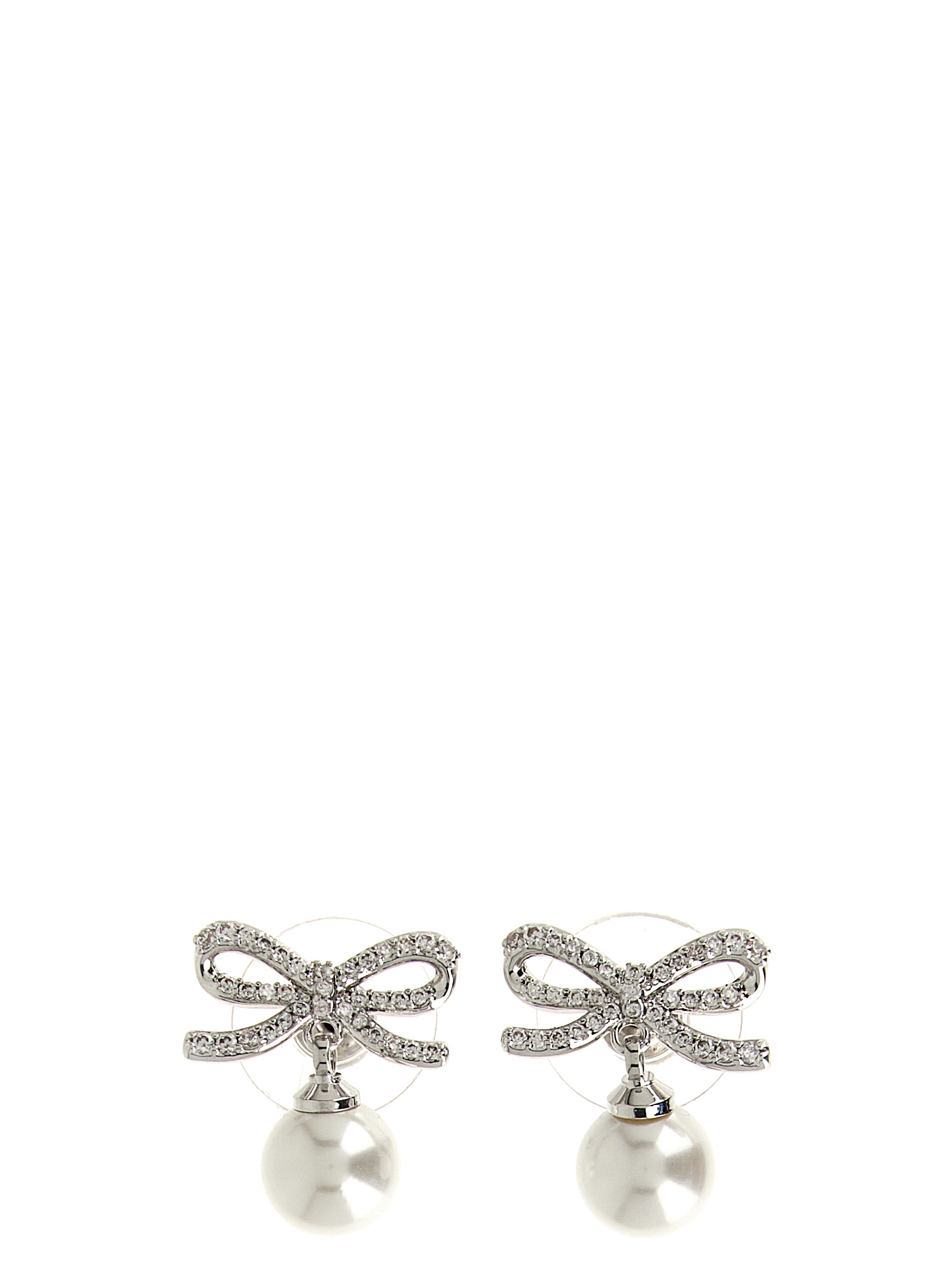 'Bow Pearl' earrings in metal and crystals, bow-shaped model with pearl pendant, button closure. ITEM CANNOT BE RETURNEDХарактеристики товара