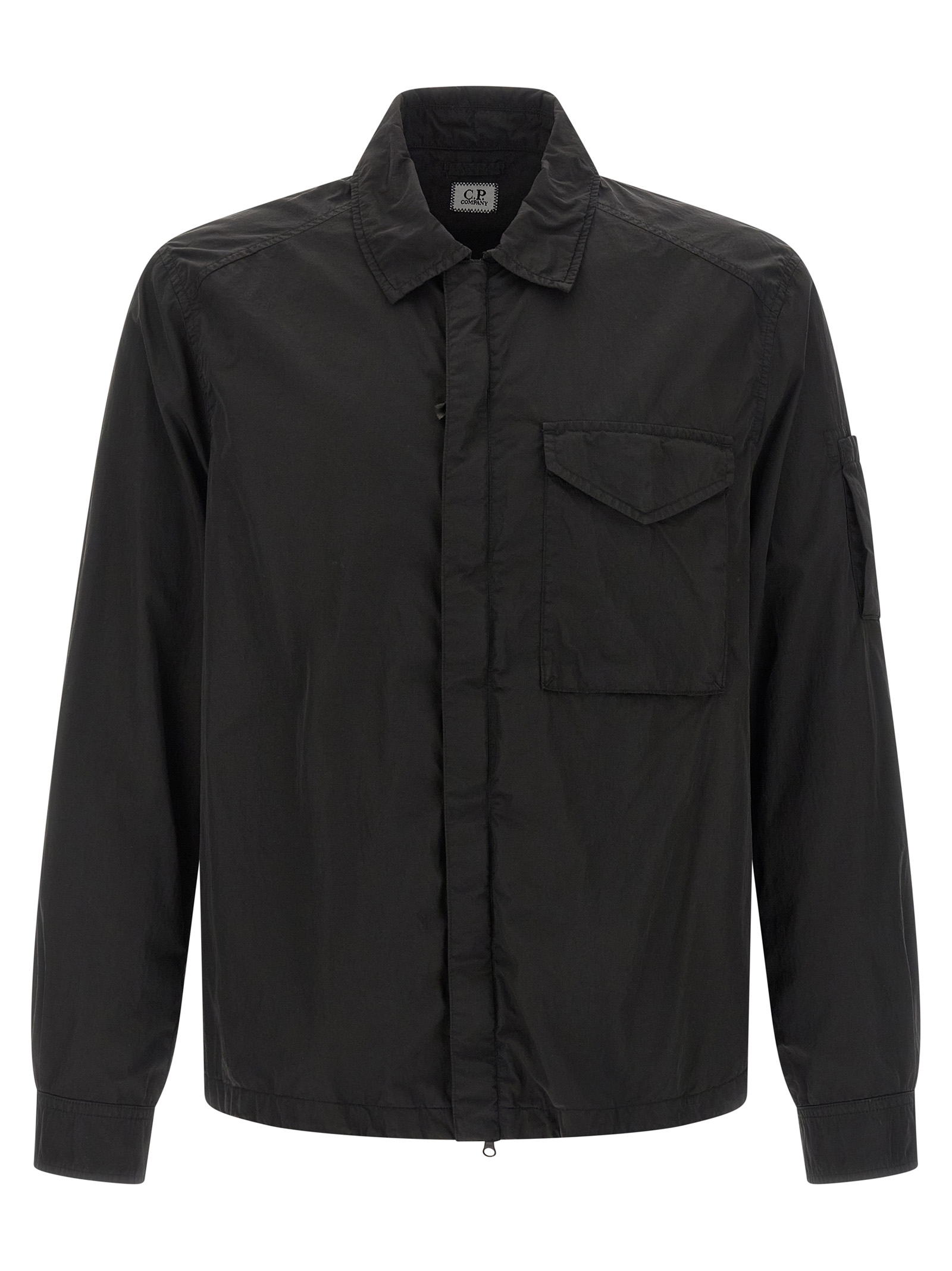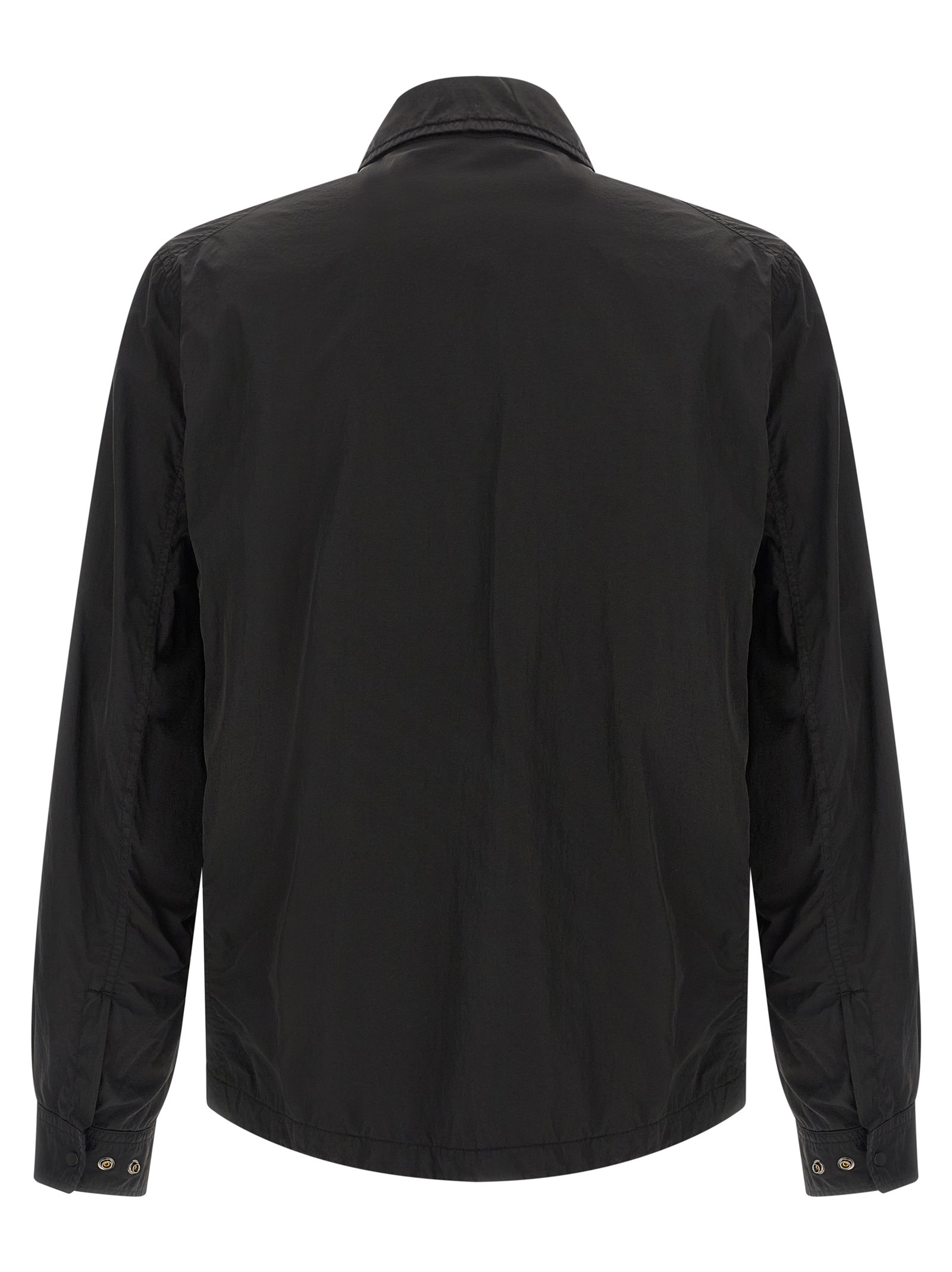 Garment-dyed Chrome-R overshirt with anti-drip treatment, front zip closure, pockets, long sleeves with cuffs and lens, breathable mesh lining. SUSTAINABLE: This product is made of Chrome-R, a 100% recycled glossy multifilament nylon, obtained from processing waste and transformed into a new Global Recycled Standard (GRS) certified fiber.