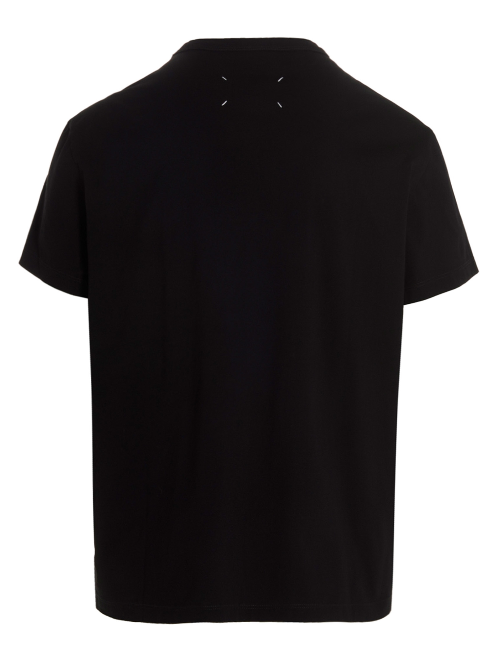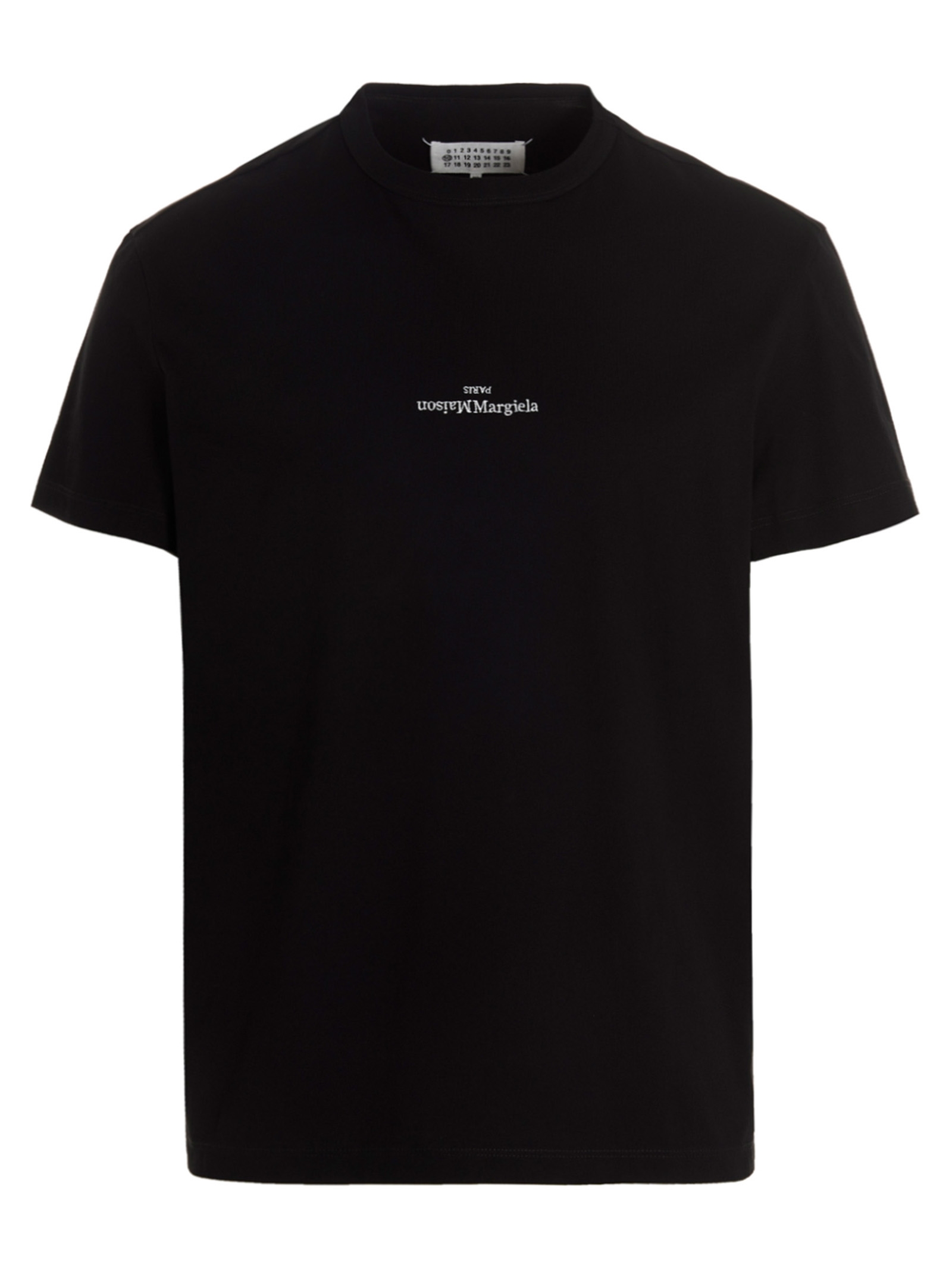Cotton crew neck T-shirt with embroidered 'Maison Margiela Paris' logo on the front and short sleeves.