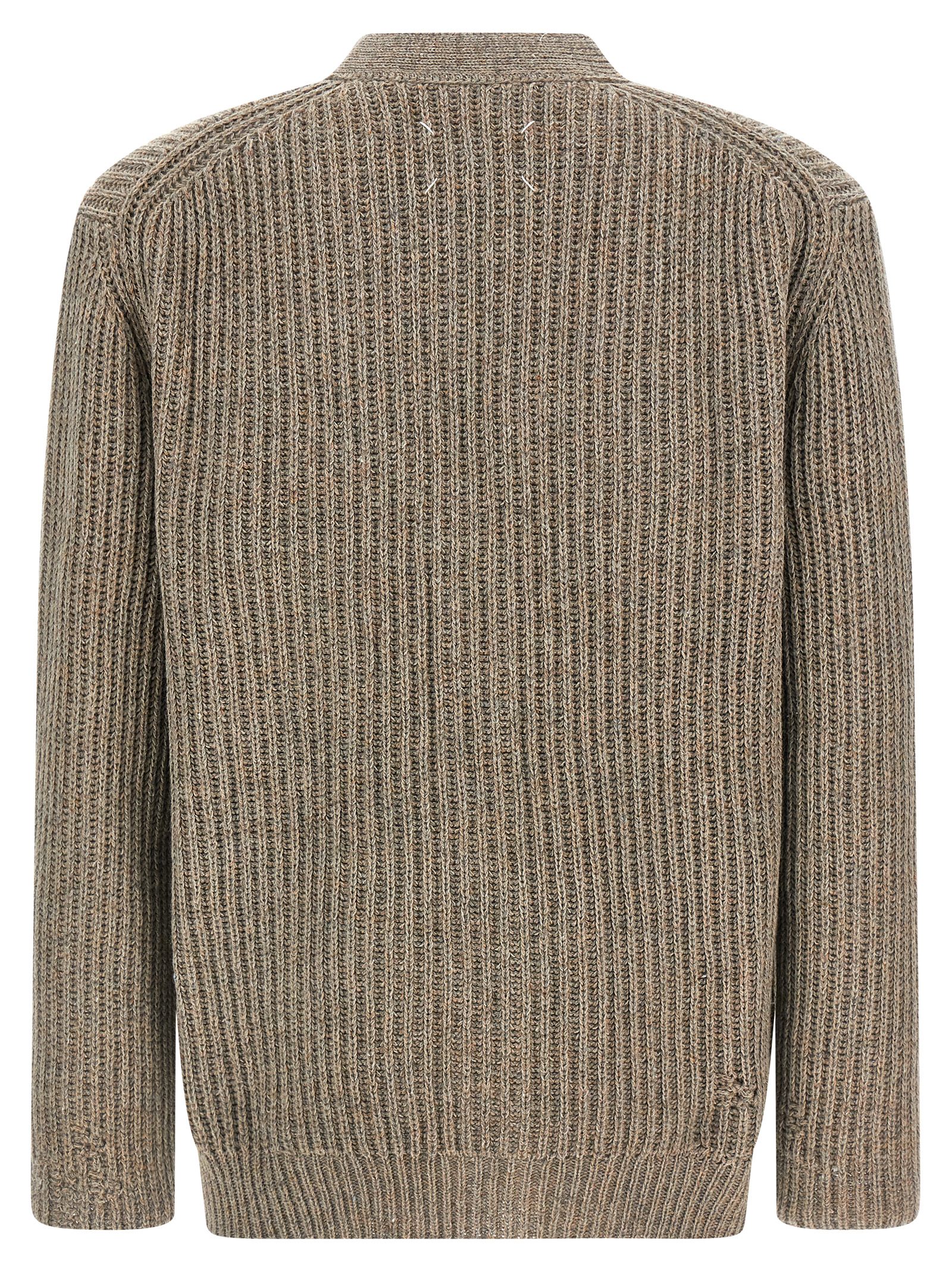 Wool cardigan with a worn look, front 'Memory of' detail that reveals the imprint of an applied pocket, V-neck, button closure, long sleeves, 'Four stitches' at the back. This product has been made with craftsmanship that makes it a unique piece. Slight imperfections and slight differences between one garment and another are, therefore, to be considered normal and a guarantee of craftsmanship of the product.
