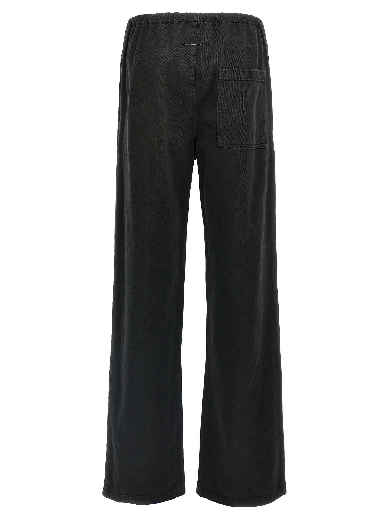 Delavé cotton trousers, adjustable drawstring at the waist, pockets, straight and wide leg, 'White stitch line' and 'Numeric signature MM6' at the back.