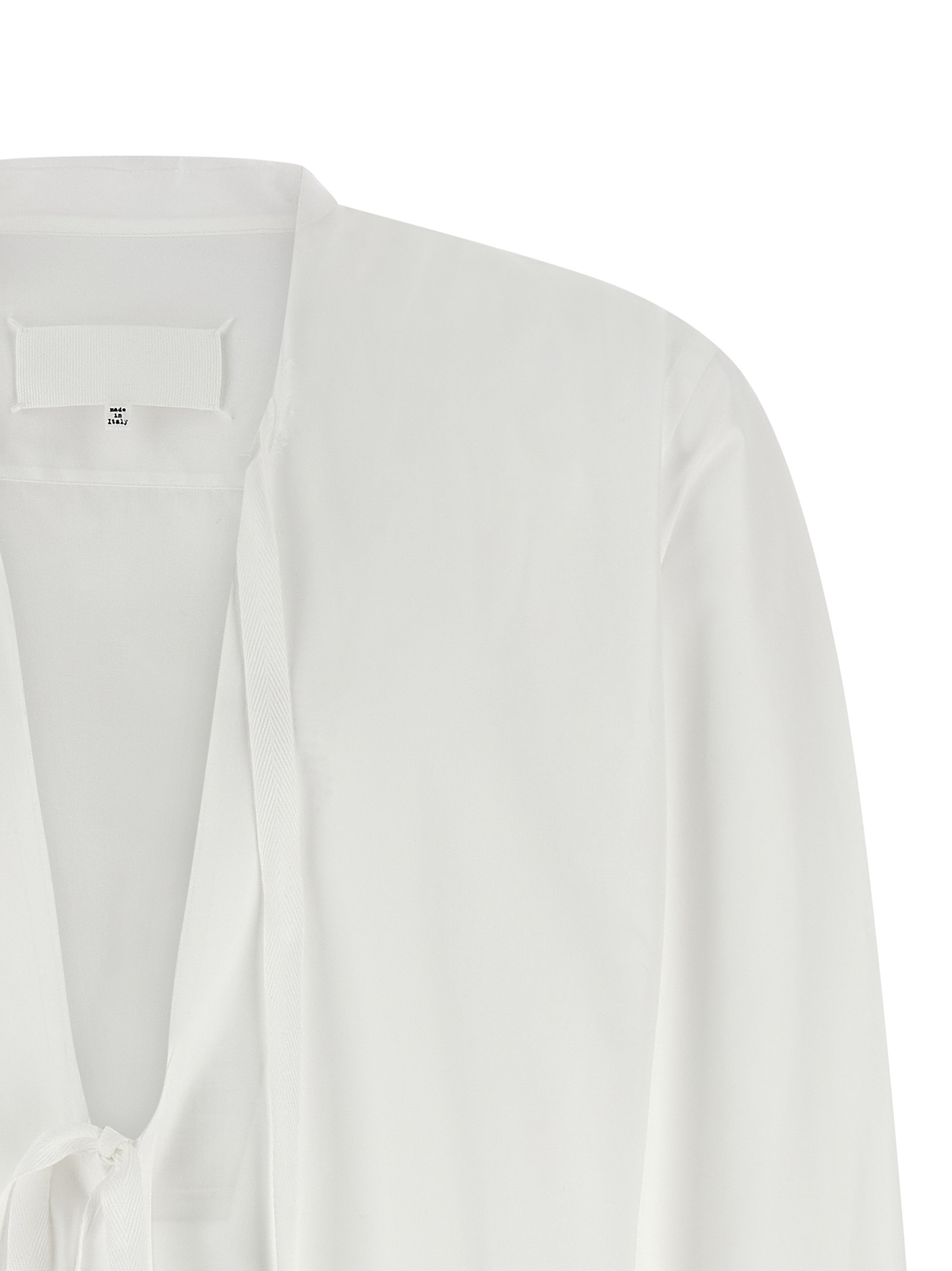 Cotton poplin shirt, V-neck with raw cut hem and tone-on-tone grosgrain ribbons to tie as desired, front mother-of-pearl button closure, long sleeves with wide cuffs, 'Four Stitches' at the back, rounded and asymmetrical hem.Характеристики товара