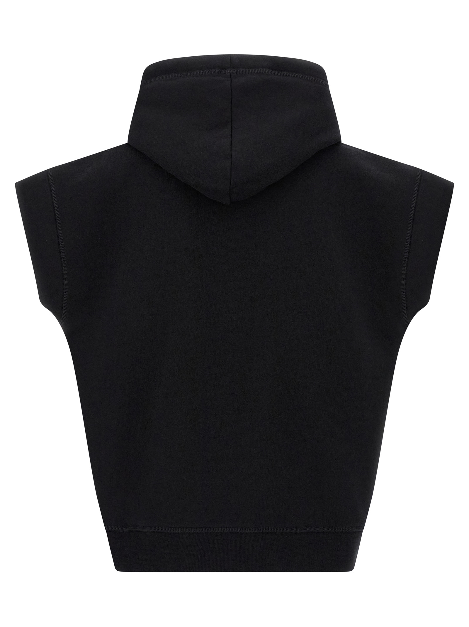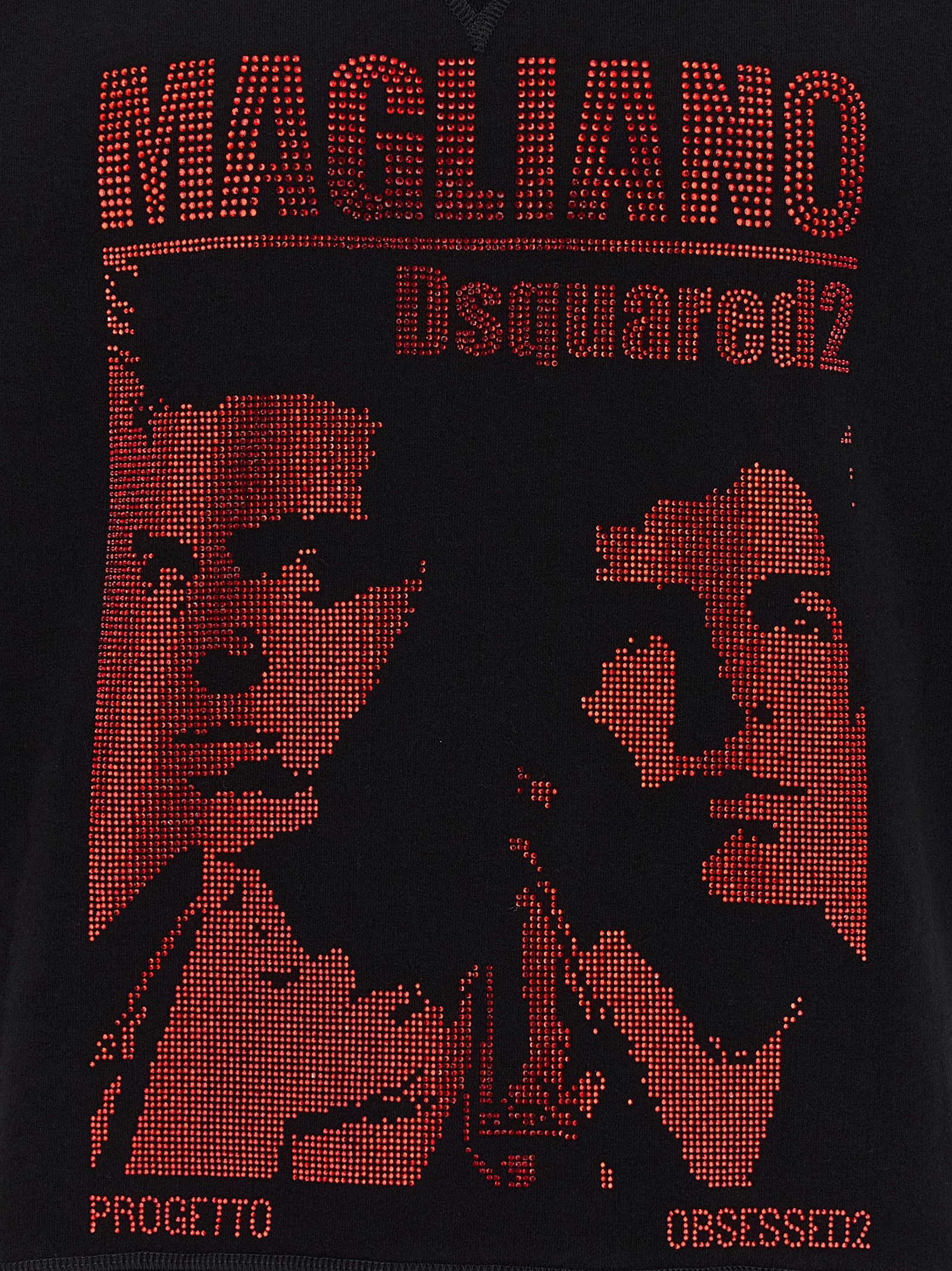 Magliano x Dsquared2 capsule hoodie in fleece cotton with front crystal appliqué print, and slightly short sleeves.