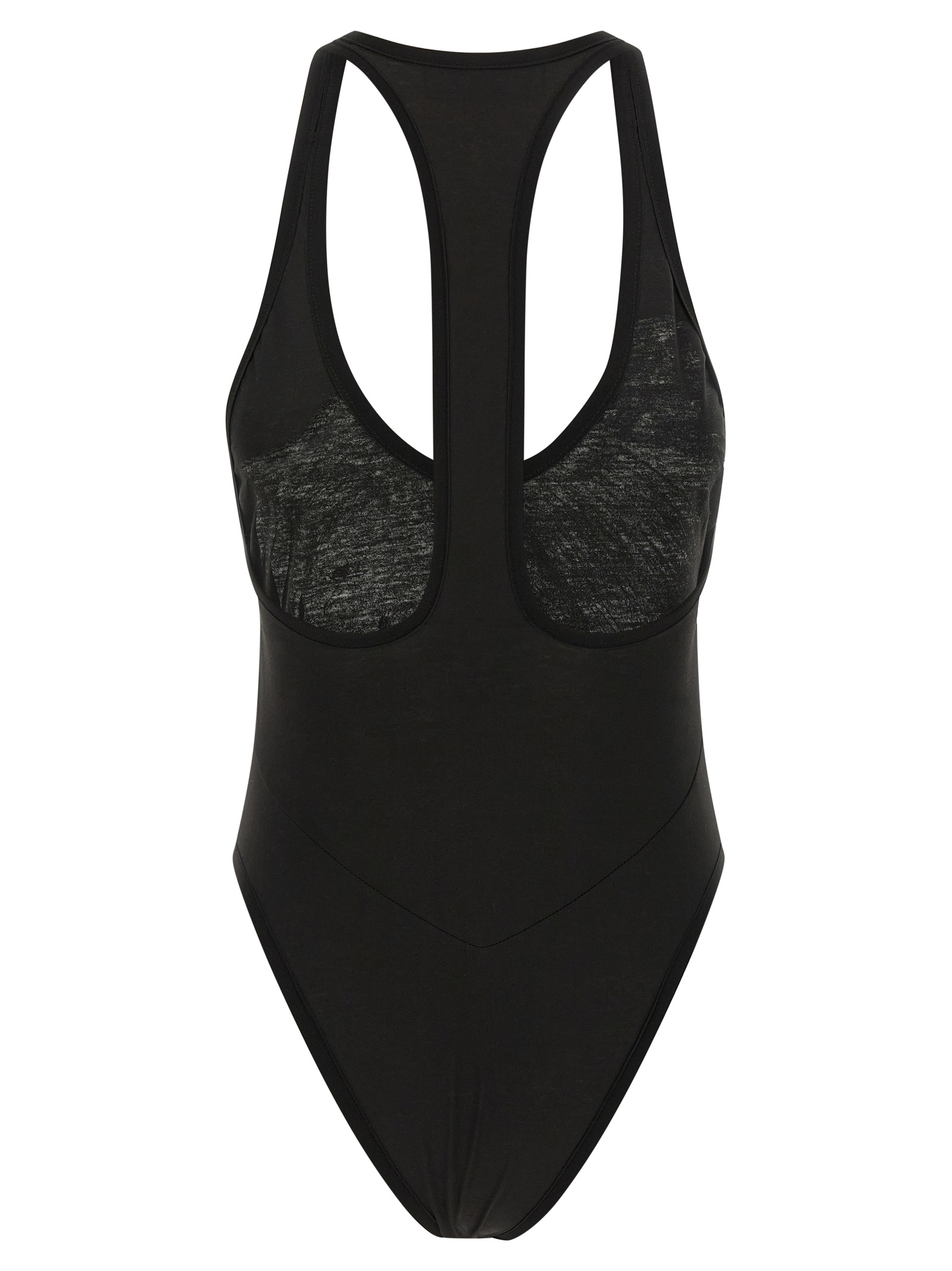 Bettter x Dsquared2 'Racer' cotton bodysuit with front print, wide front round neckline, sleeveless, snap buttons on the hem, high-leg.