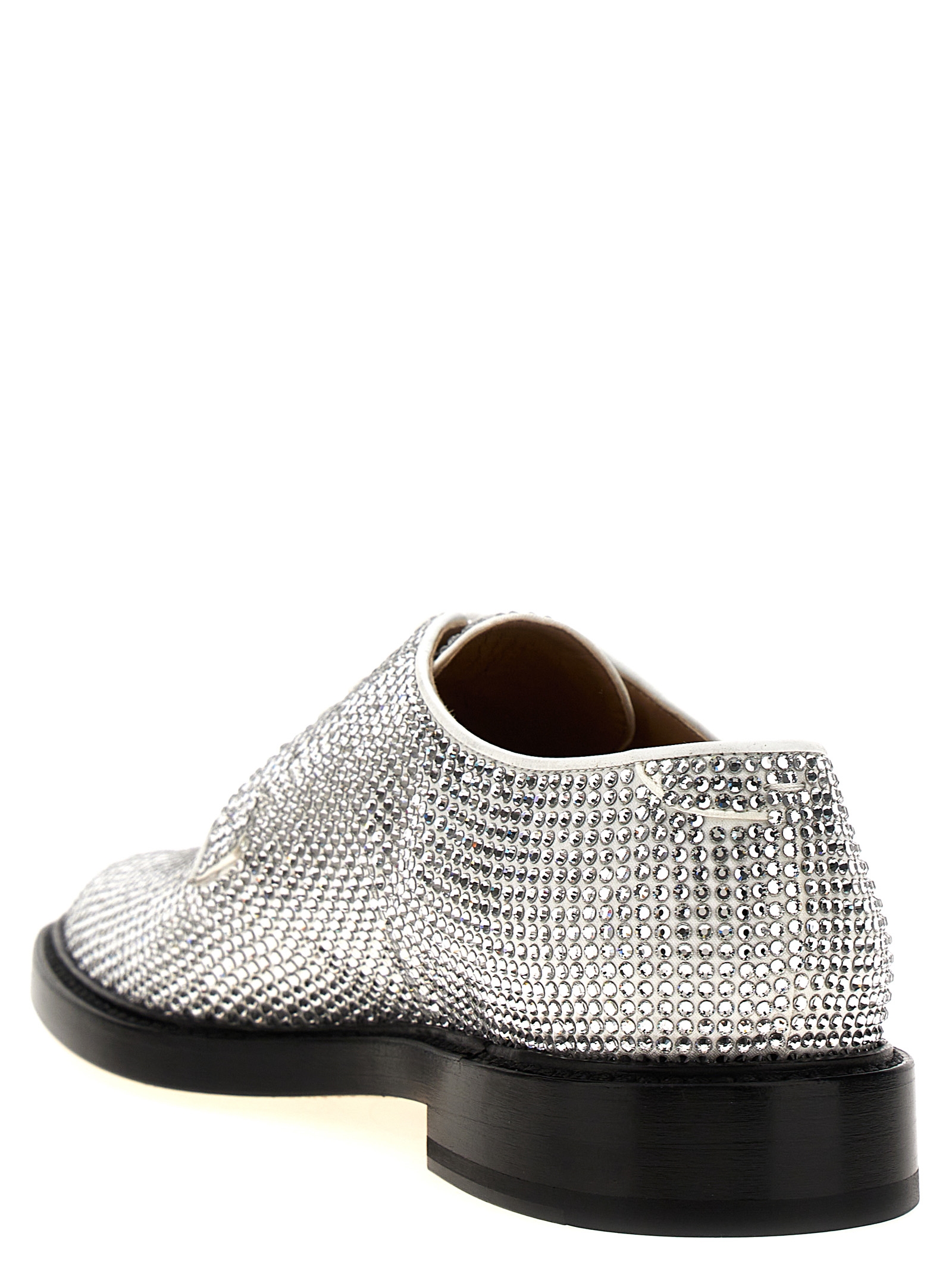 'Tabi' satin lace up shoes with rhinestones, laces and leather sole.