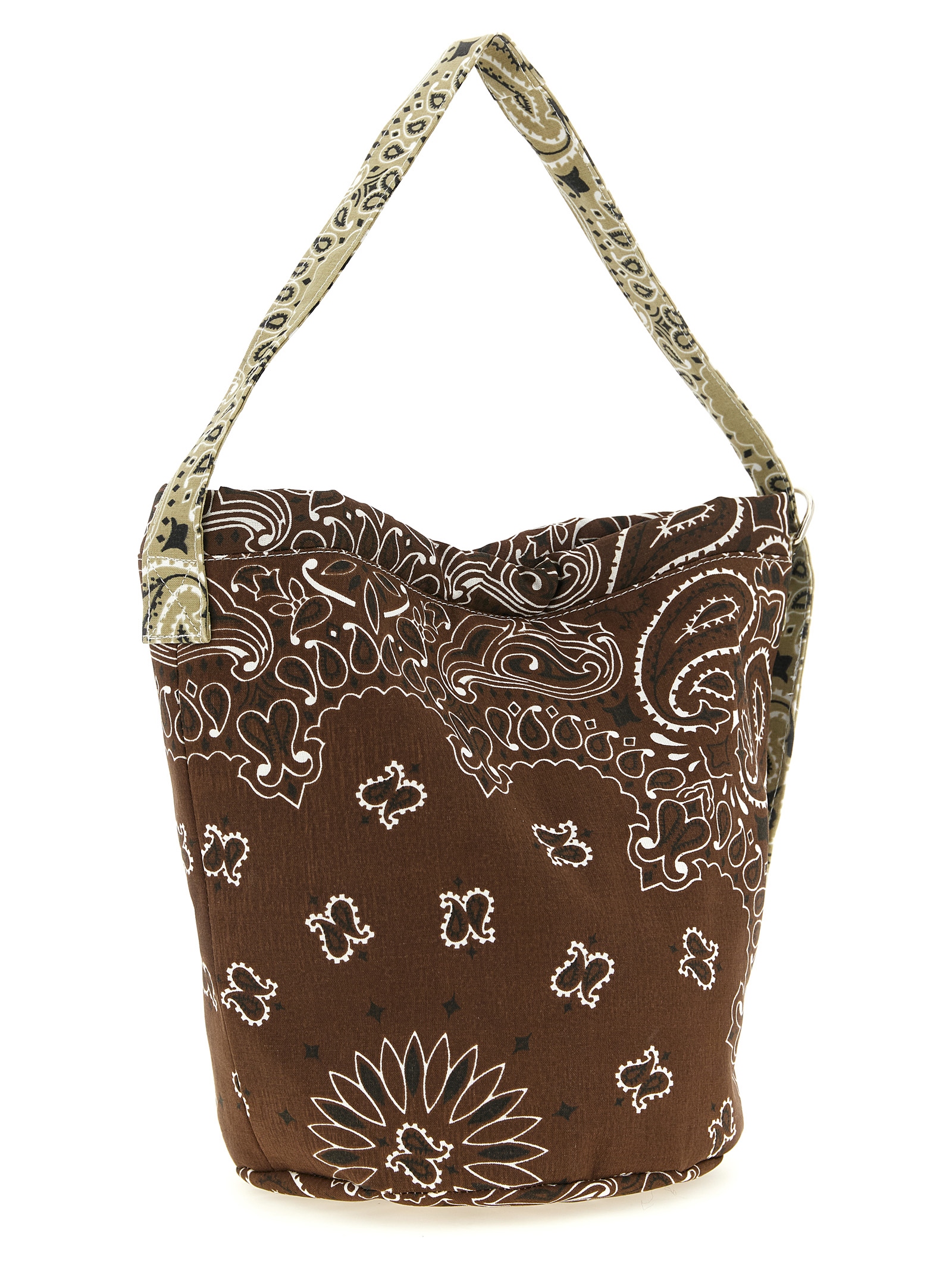 Seau' bucket bag in all-over 'Bandana' print cotton, internal snap button closure, adjustable handle with two half-moon rings and a snap hook. Dyeing baths may vary slightly from one production batch to another.