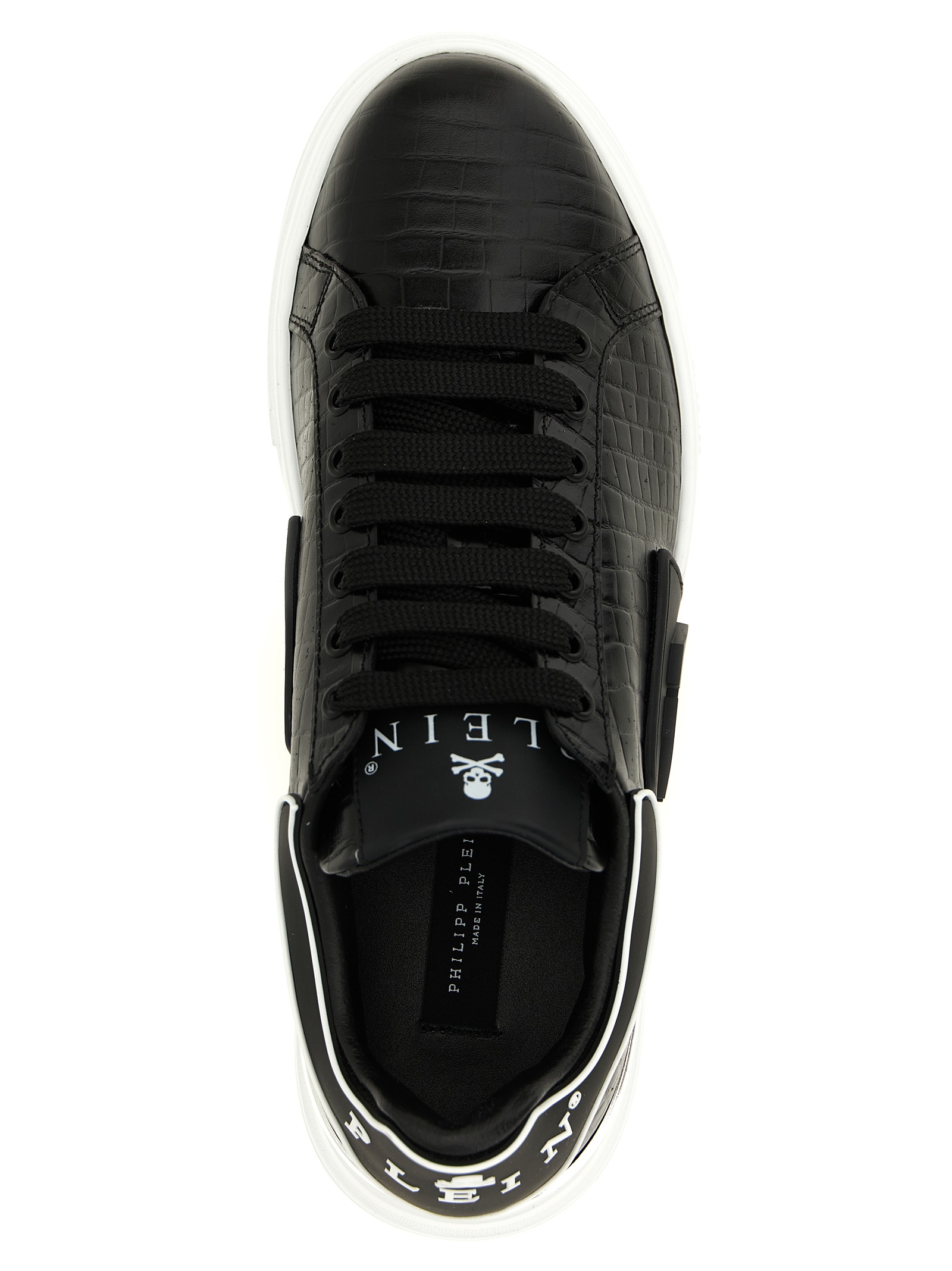 'Phantom Kick$ Cocco' sneakers in premium crocodile-effect print leather, 3D silicone logo details on the side and heel, lace-up closure, cushioned insole, rubber sole.