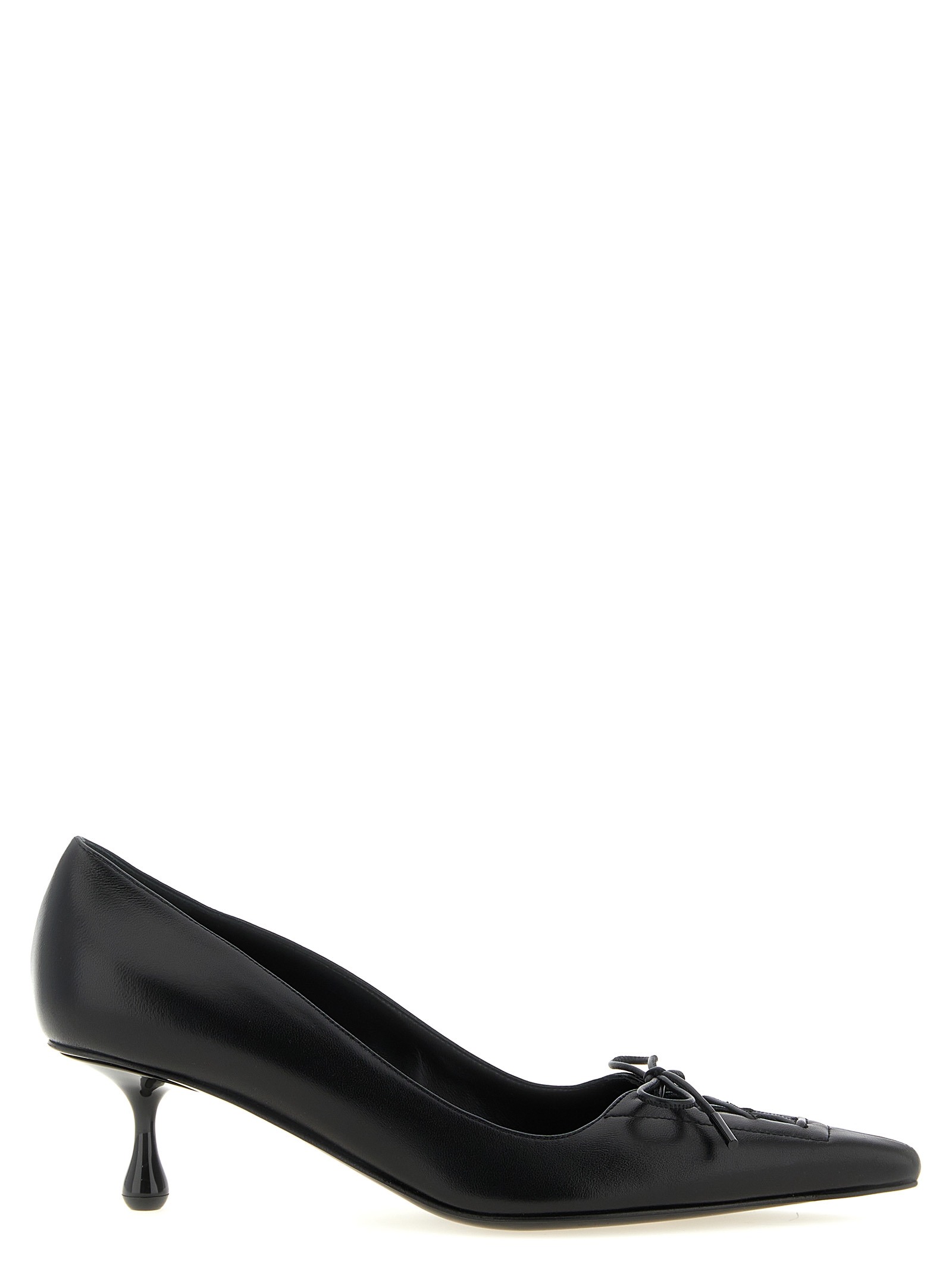 'Scarlett' nappa pointed pumps with corset upper with hand-strung leather lace and fixed with an invisible stitch, teardrop heel, leather sole.