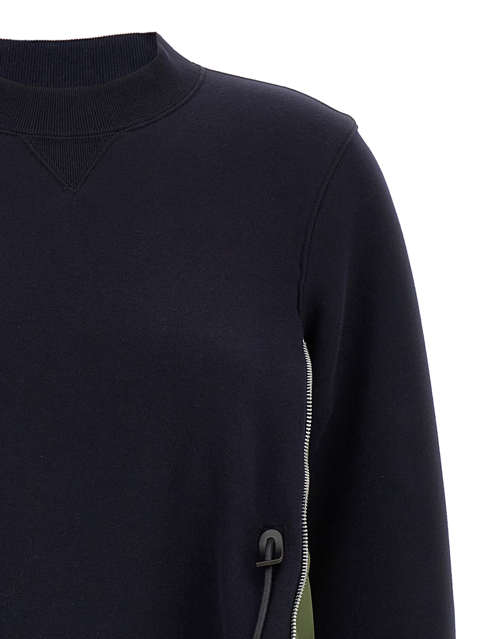 'Sponge' cotton blend mini dress with nylon inserts, adjustable drawstring at the waist, pockets, long cuffed sleeves, crew neck, adjustable drawstring at the hem.