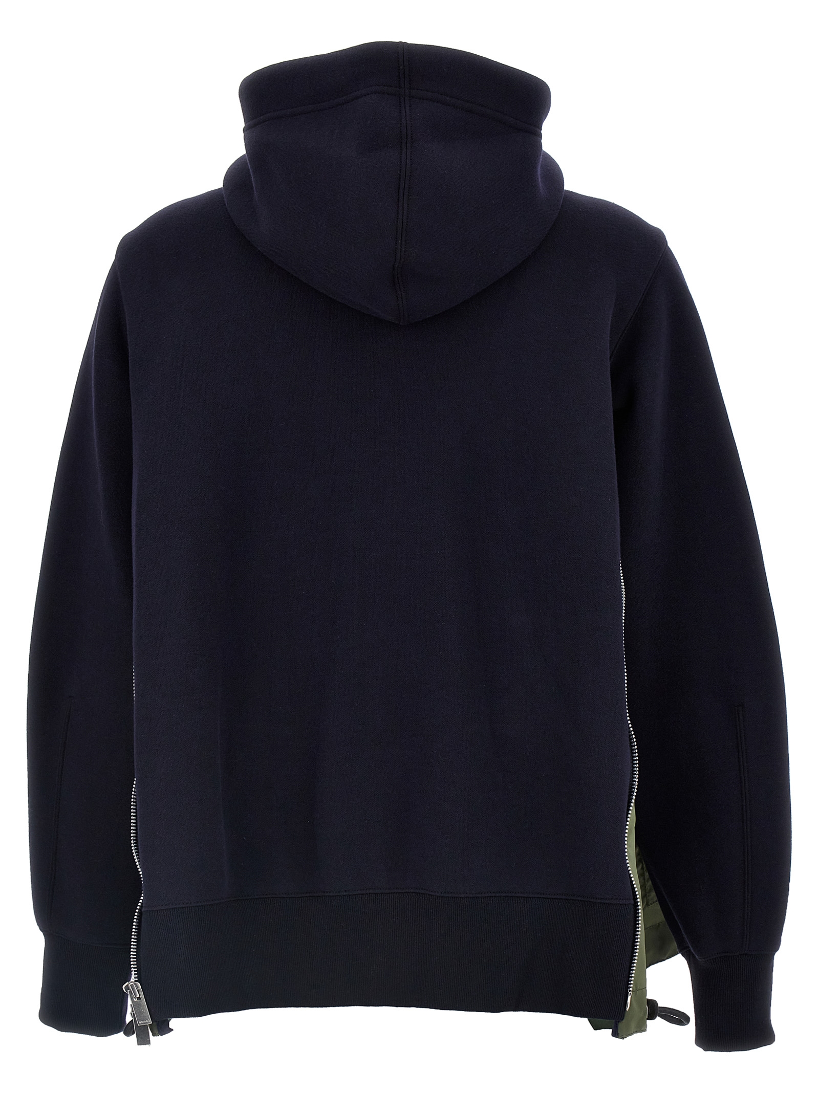 'Sponge' cotton blend hoodie with nylon inserts, zip closure, pockets, long cuffed sleeves.