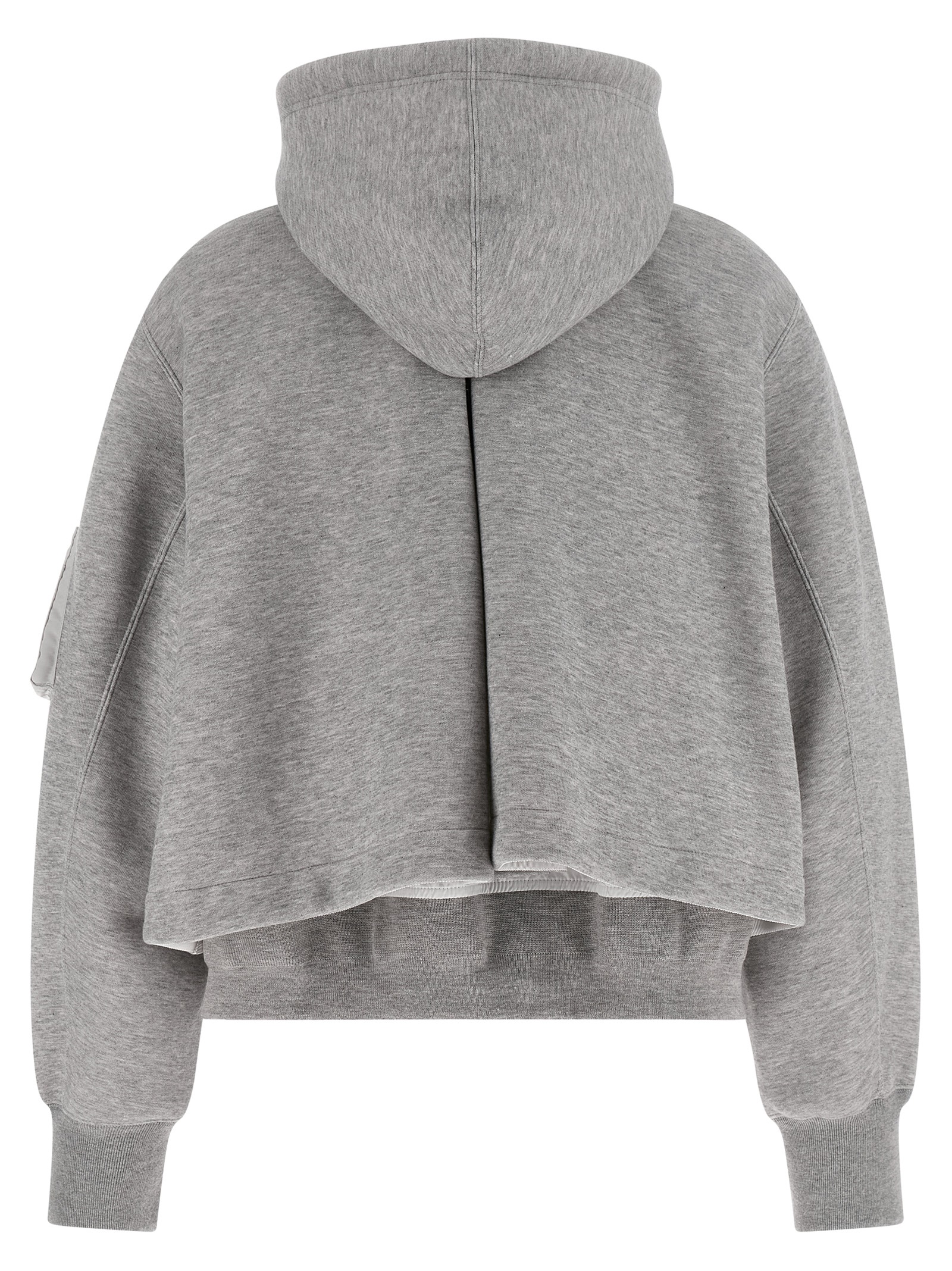 'Sponge' hoodie in mélange cotton blend with nylon inserts, zip closure, pockets, long cuffed sleeves.
