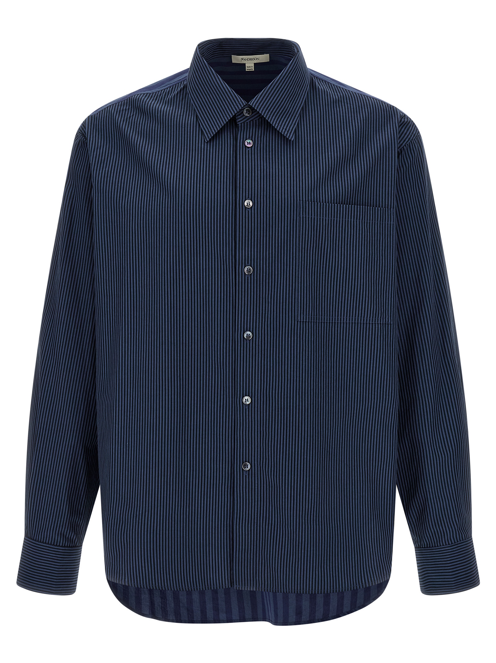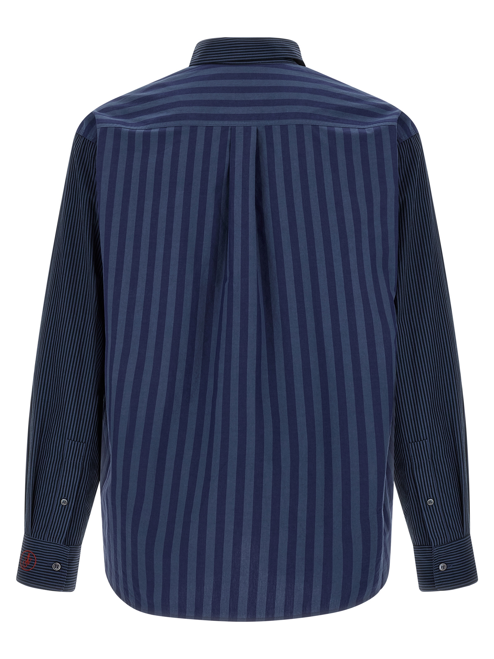 'Patchword Striped' cotton shirt with collar, button closure, front patch pocket, asymmetric length, long cuffed sleeves.