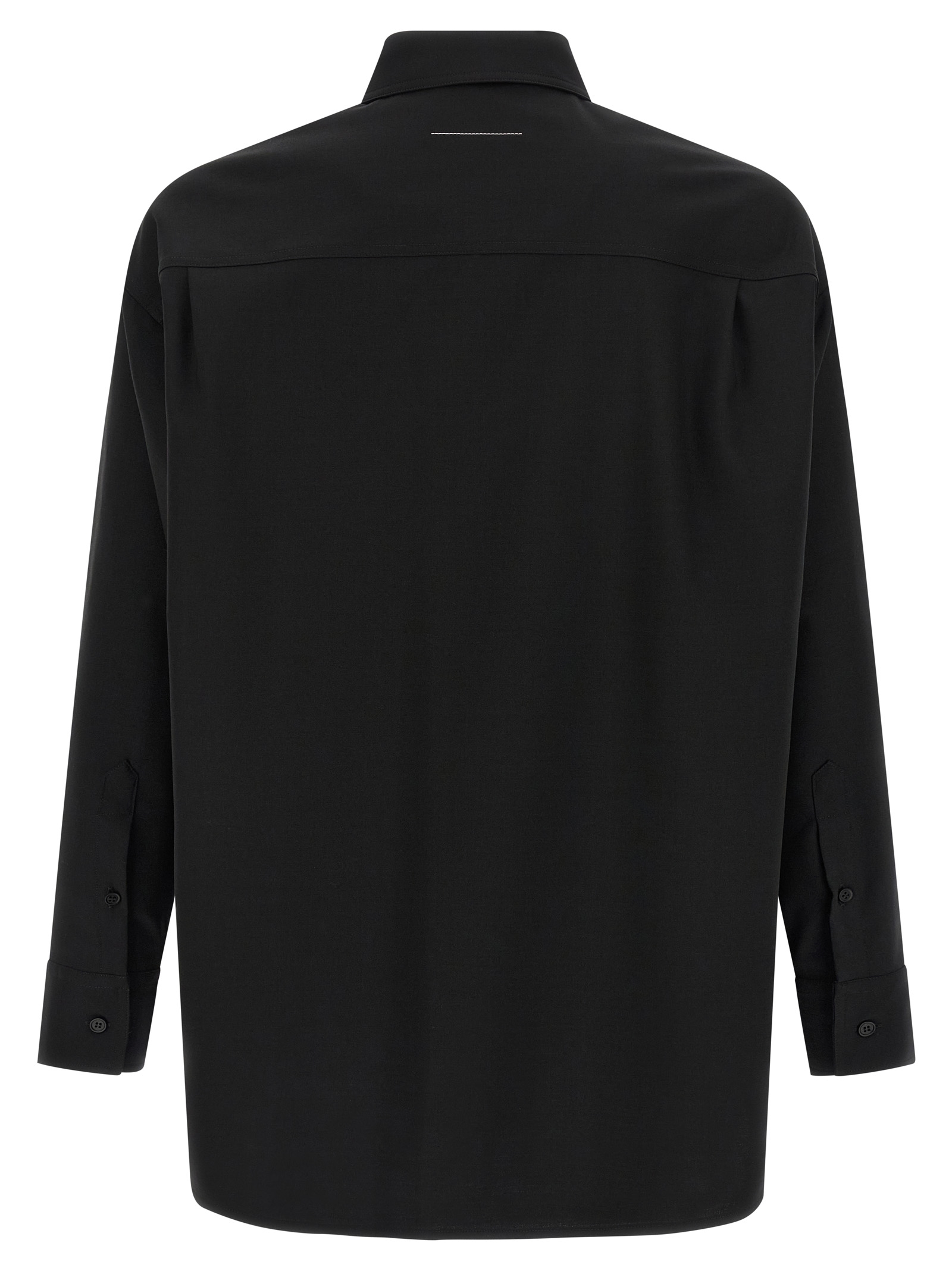Sartorial wool blend shirt, inner jacquard labels on the front, button closure, long cuffed sleeves, 'White Stitch Line' at the back.