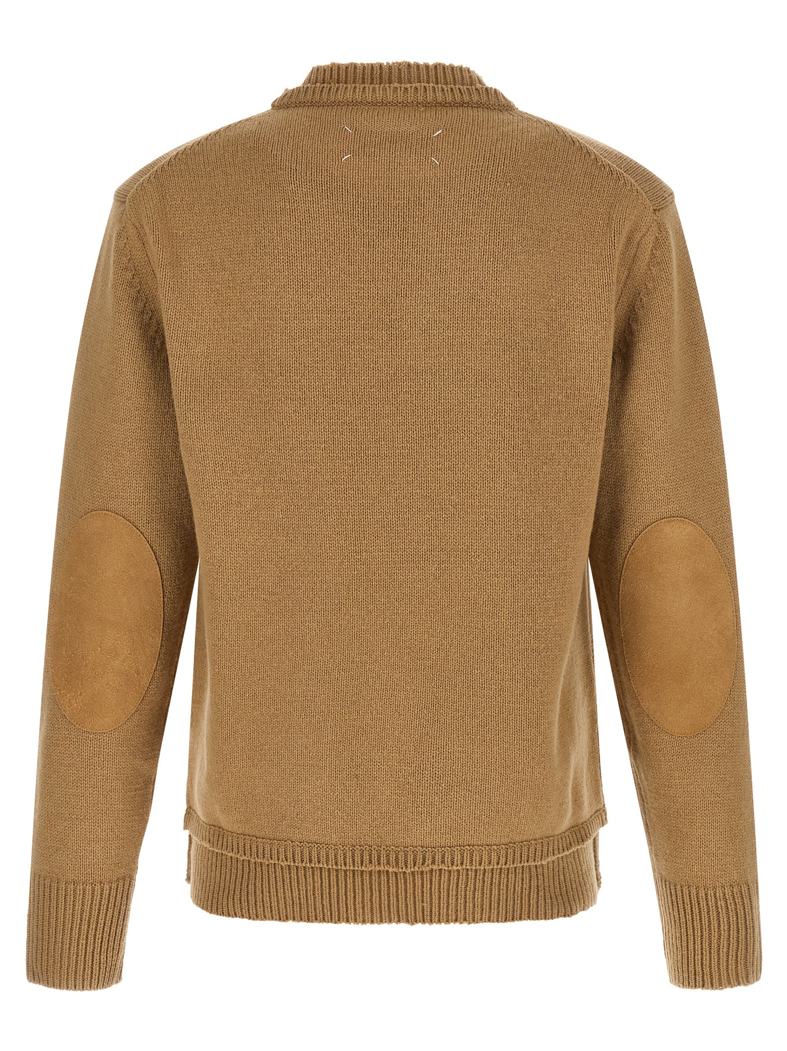 Thick knit wool sweater, crew neck, double layer effect, destroyed details, suede patches on the sleeves, long sleeves with cuffs.Характеристики товара