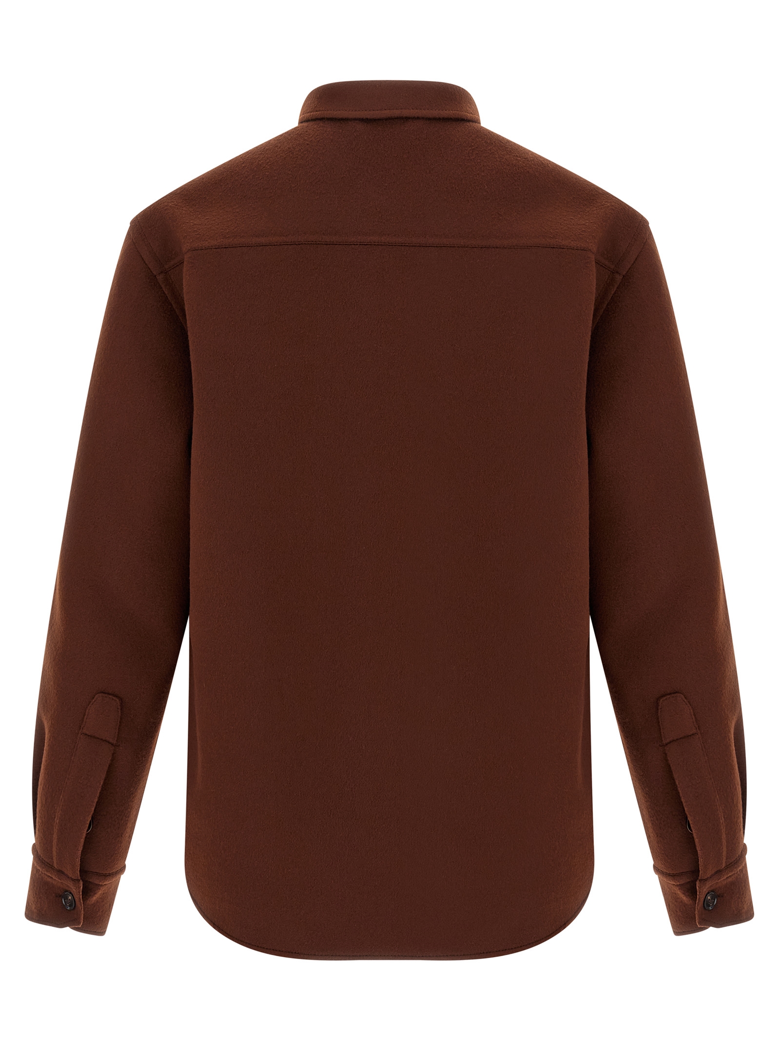'Vagabond' overshirt in heavy wool and cashmere cloth, front button closure, pockets, long cuffed sleeves, unlined.